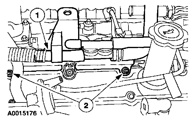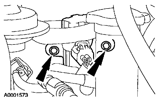 17. Remove the bolts and position the power steering pump reservoir aside.