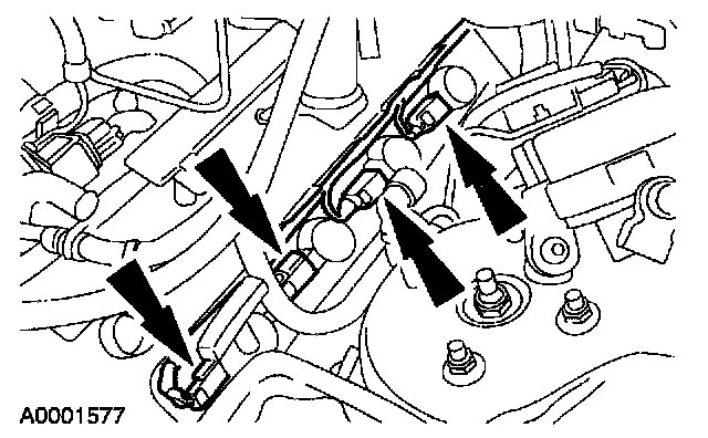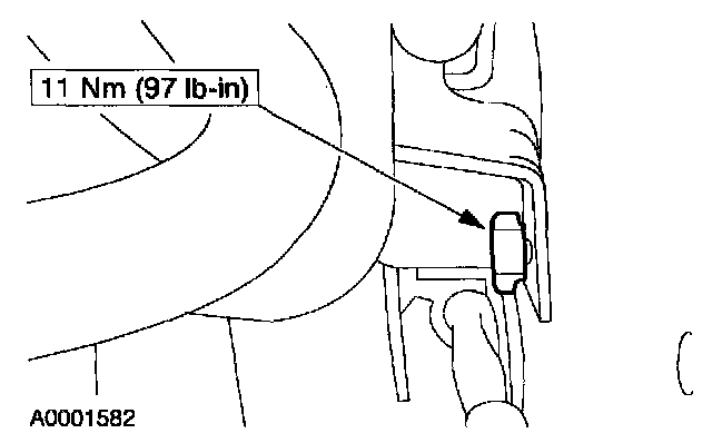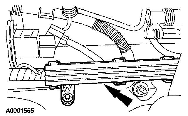 16. Remove the fuel line bracket bolt from the LH shock tower.