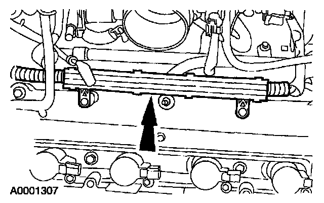 8. Raise the engine wiring harness and disconnect the four fuel injector connectors.