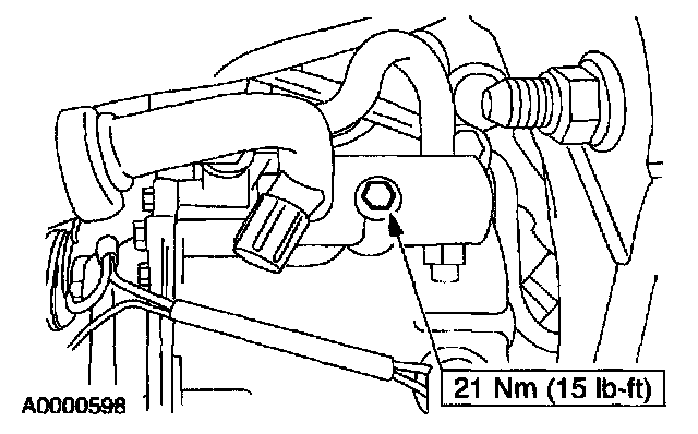 - Apply Pipe Sealant with Teflon(R) D8AZ-19554-A or equivalent meeting Ford specification WSK-M2G350-A2 to the threads of the A/C manifold bolt.