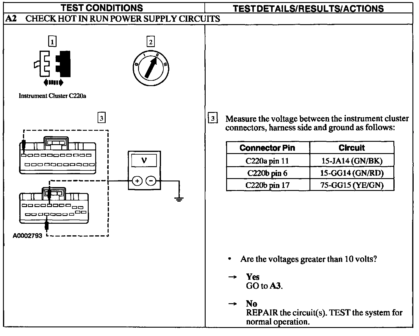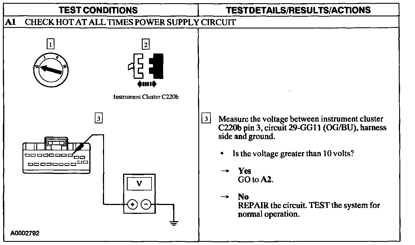 Test A: No Communication With the Instrument Cluster Module/Message Center Module