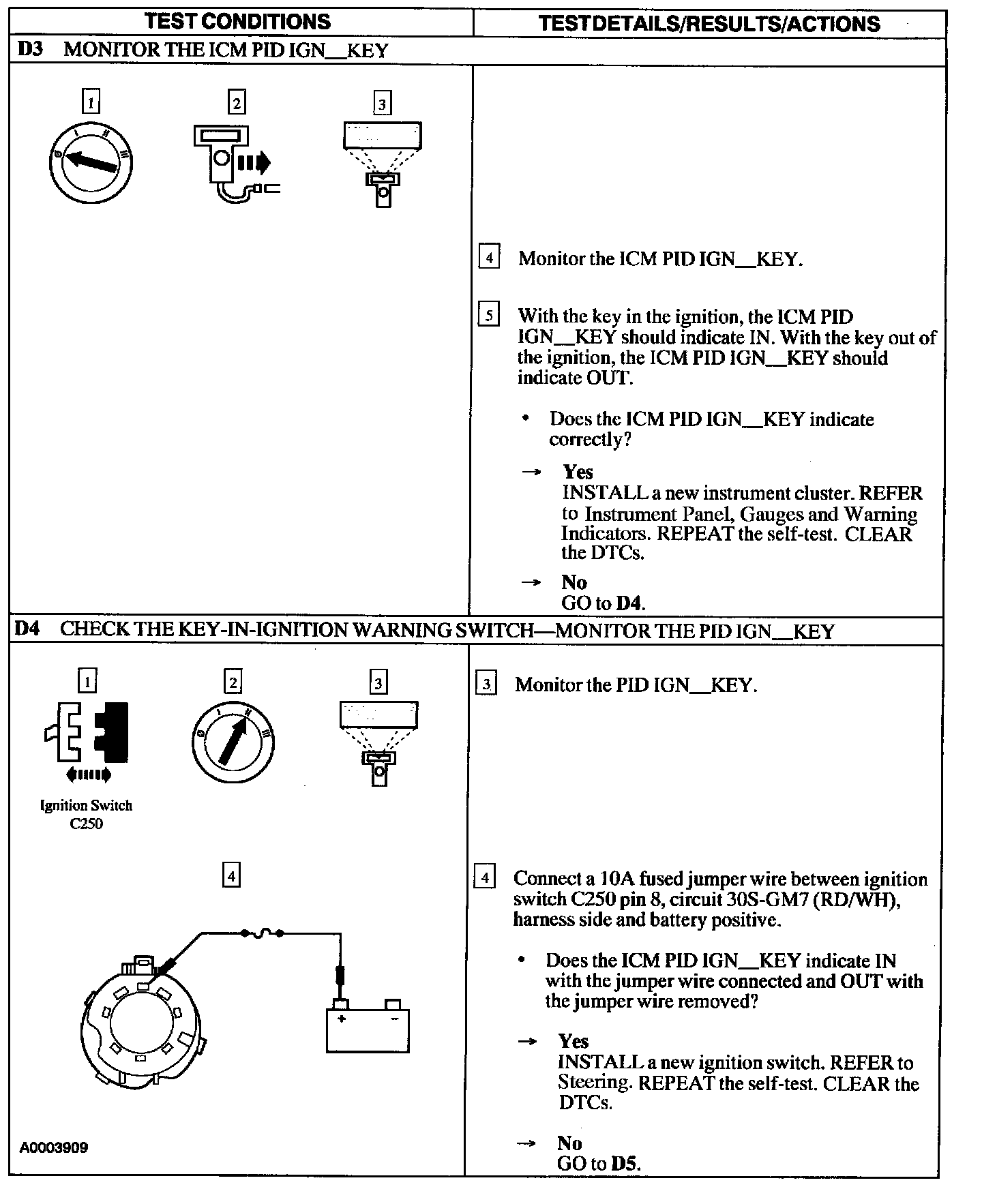 Test D: Key-In-Ignition Chime Does Not Operate Correctly