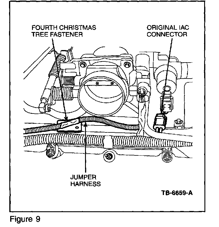 n. Connect the Jumper Harness to the IAC and the original IAC connector/harness to the folded back connector on the Jumper Harness. Refer to Figure 9.