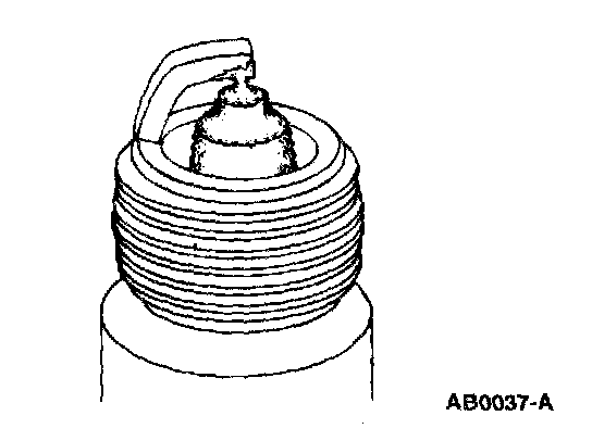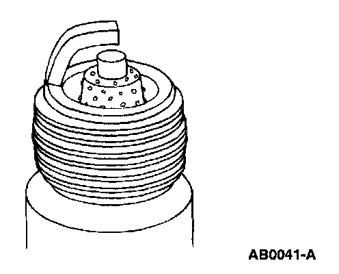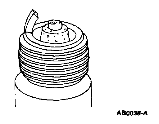 4. Inspect for oil fouling, identified by wet, black deposits on the insulator shell bore electrodes. This is caused by excessive oil entering the combustion chamber through worn rings and pistons, excessive valve-to-guide clearance or worn or loose bearings.