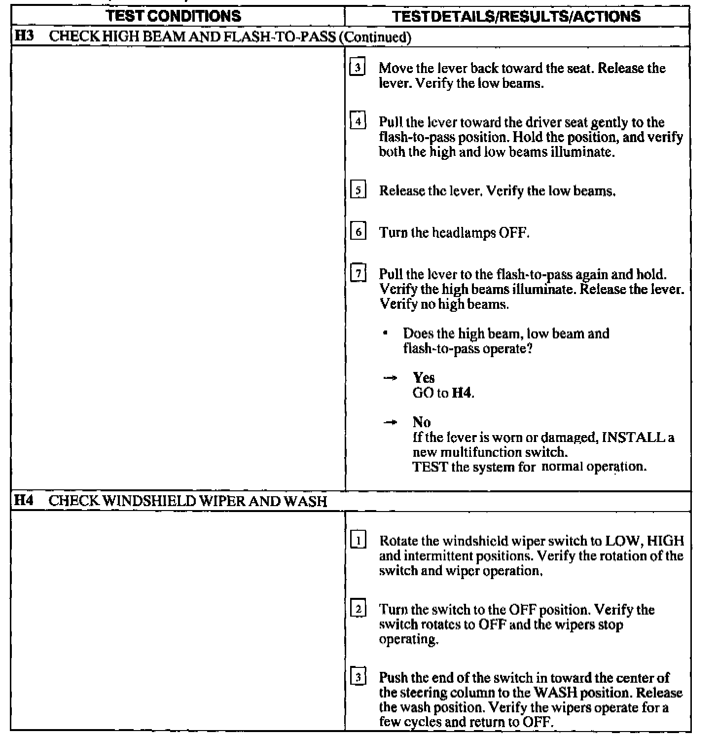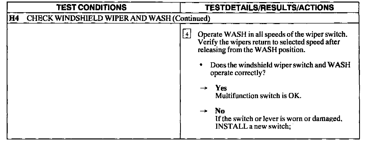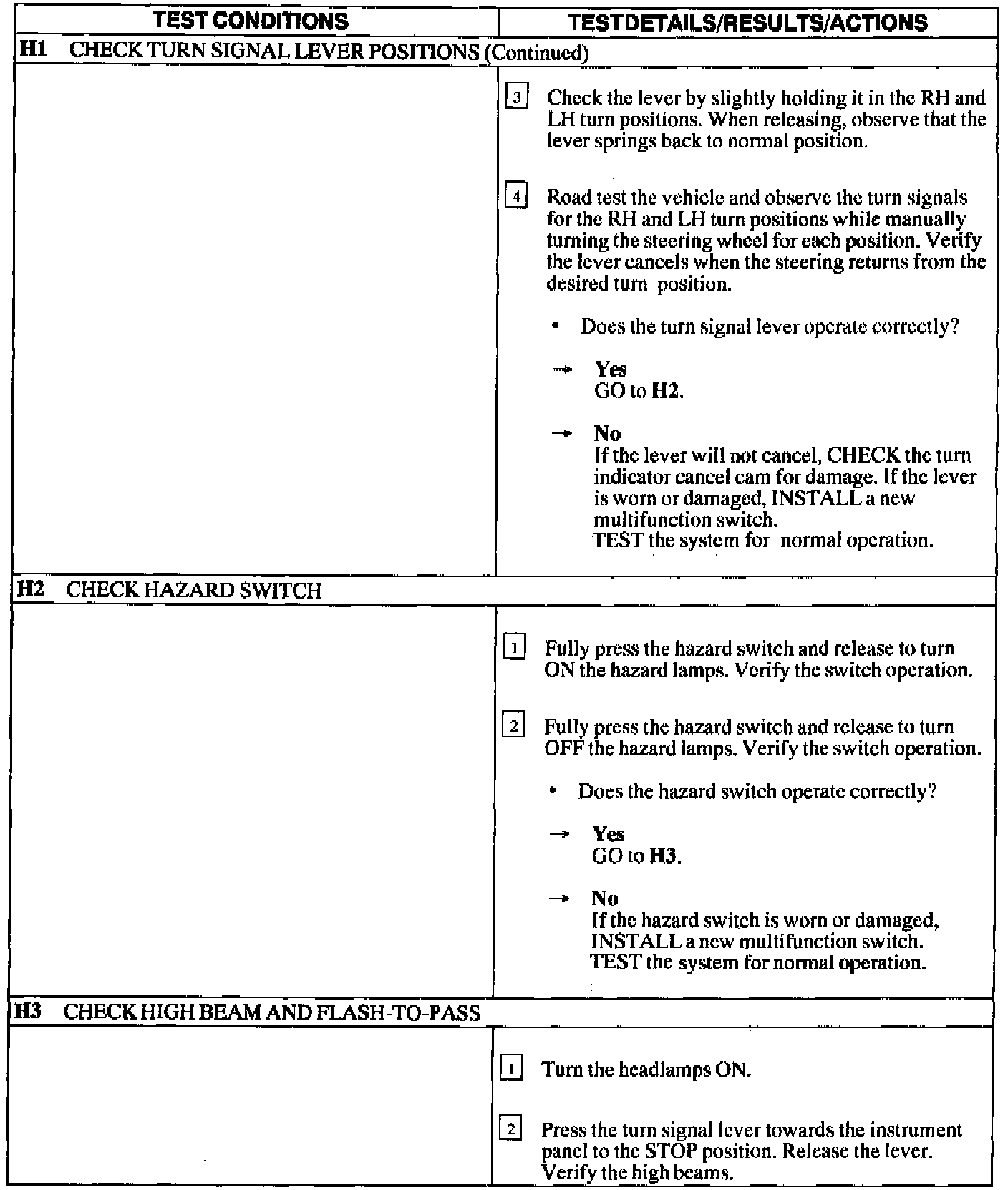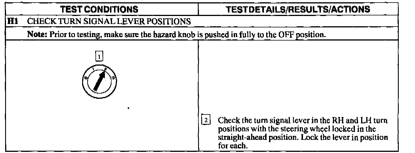 Test H: Multifunction Switch/Hazard Switch Not Operating Correctly