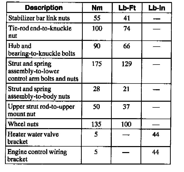 Torque Specifications