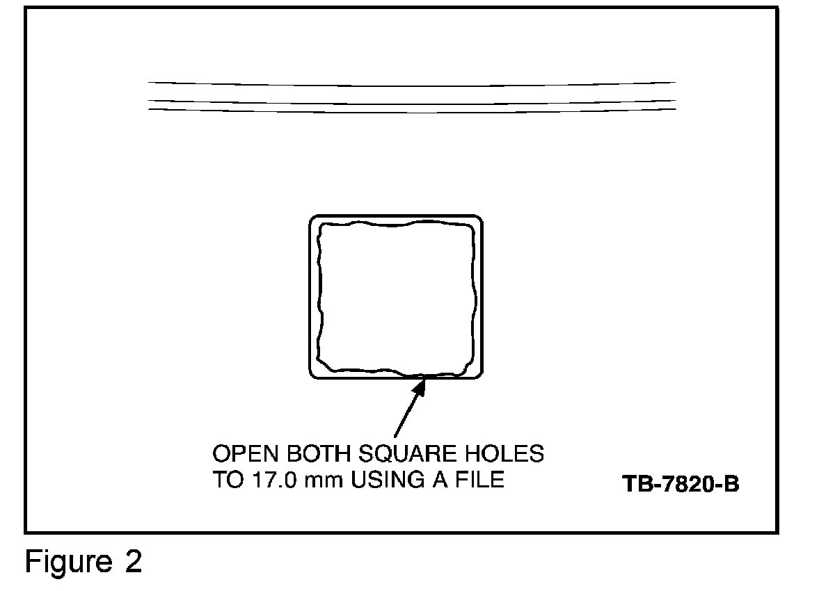 3. Enlarge the two (2) rear license plate expansion nut holes up to 17 mm using a file or suitable tool (Figure 2).