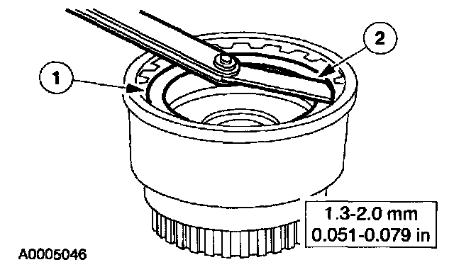 2 Using a feeler gauge, check the gap between the forward clutch retaining ring and the forward clutch pressure plate.