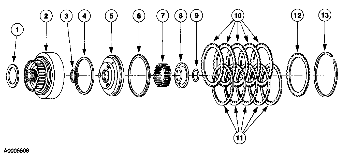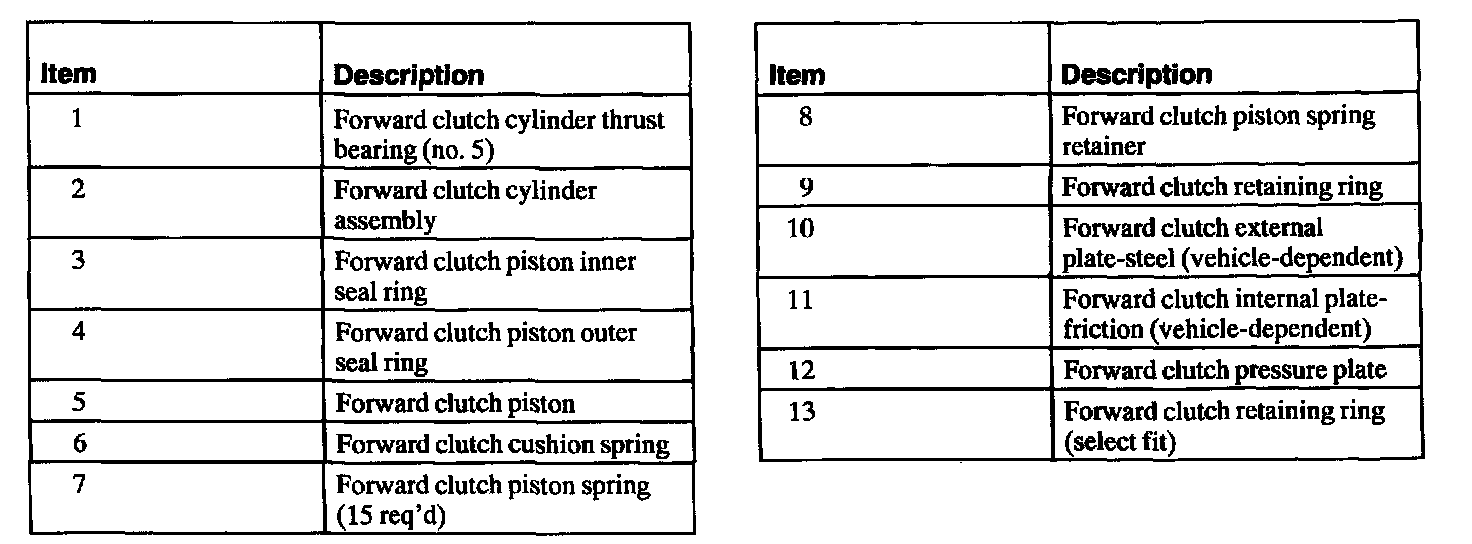 - Inspect the forward clutch plates for wear, damage or overheating.