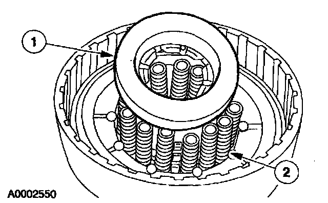 CAUTION: The forward clutch friction plates are directional and must be installed with grooves pointing counterclockwise.