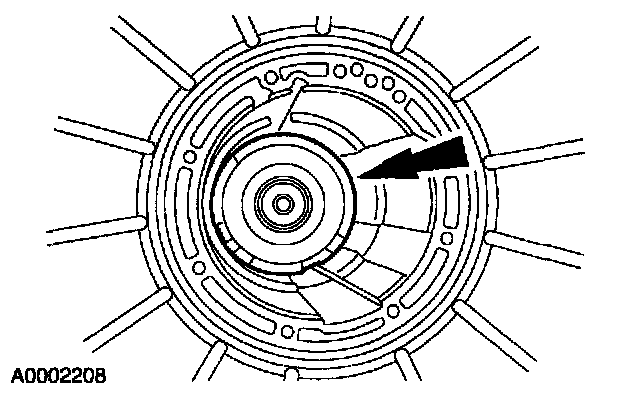 Remove the low/reverse brake drum and one-way clutch assembly by rotating it clockwise.