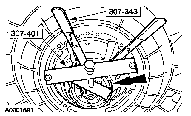 61. Using the special tools, remove the intermediate clutch retaining ring.