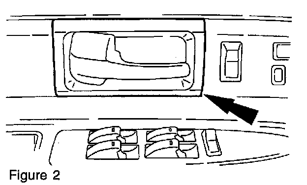 4. Remove the interior door handle trim panel by pulling outward on the panel (Figure 2).