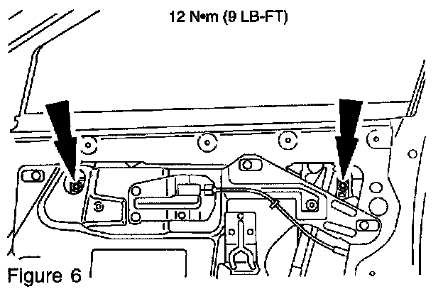 4. Loosen, DO NOT REMOVE the two (2) window regulator-to-glass clamp bolts (Figure 6).