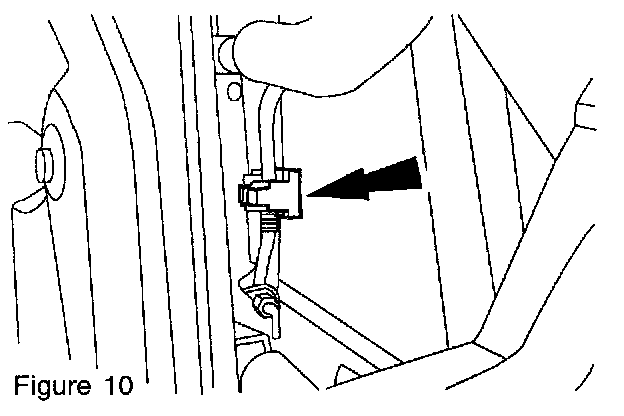 3. Release the clip and disconnect the exterior door handle actuating rod (Figure 10).