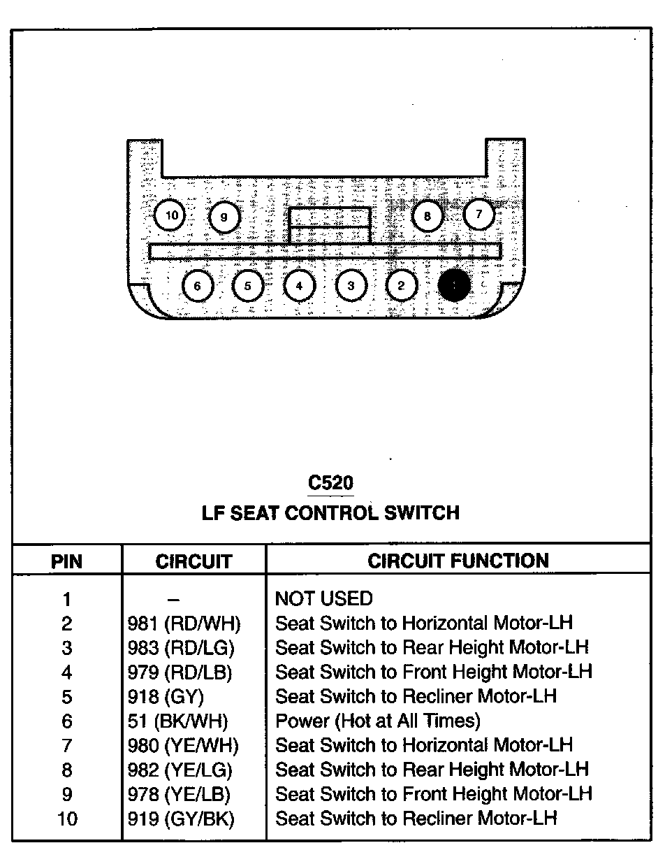 LF Seat Control Switch