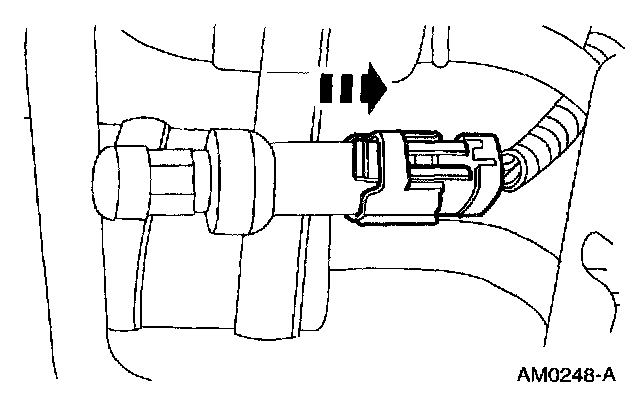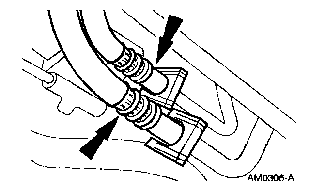 5. Disconnect the evaporator to compressor suction line and the compressor to condenser discharge line spring lock couplings from the A/C manifold and tube. See: Spring Lock Coupling Disconnect Procedure.