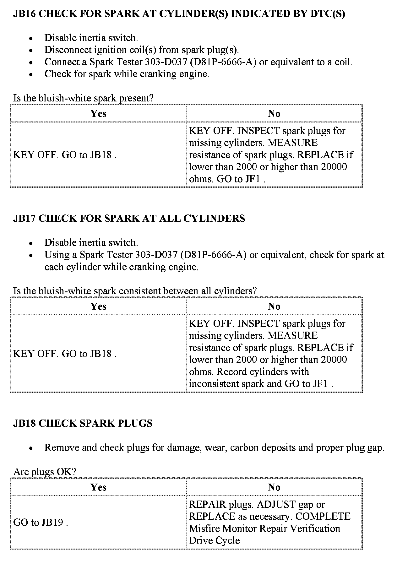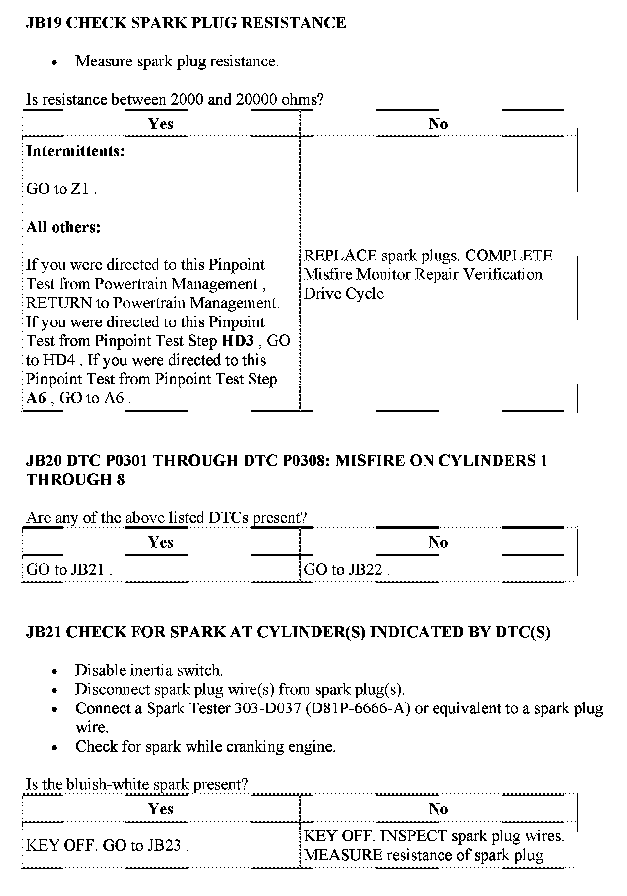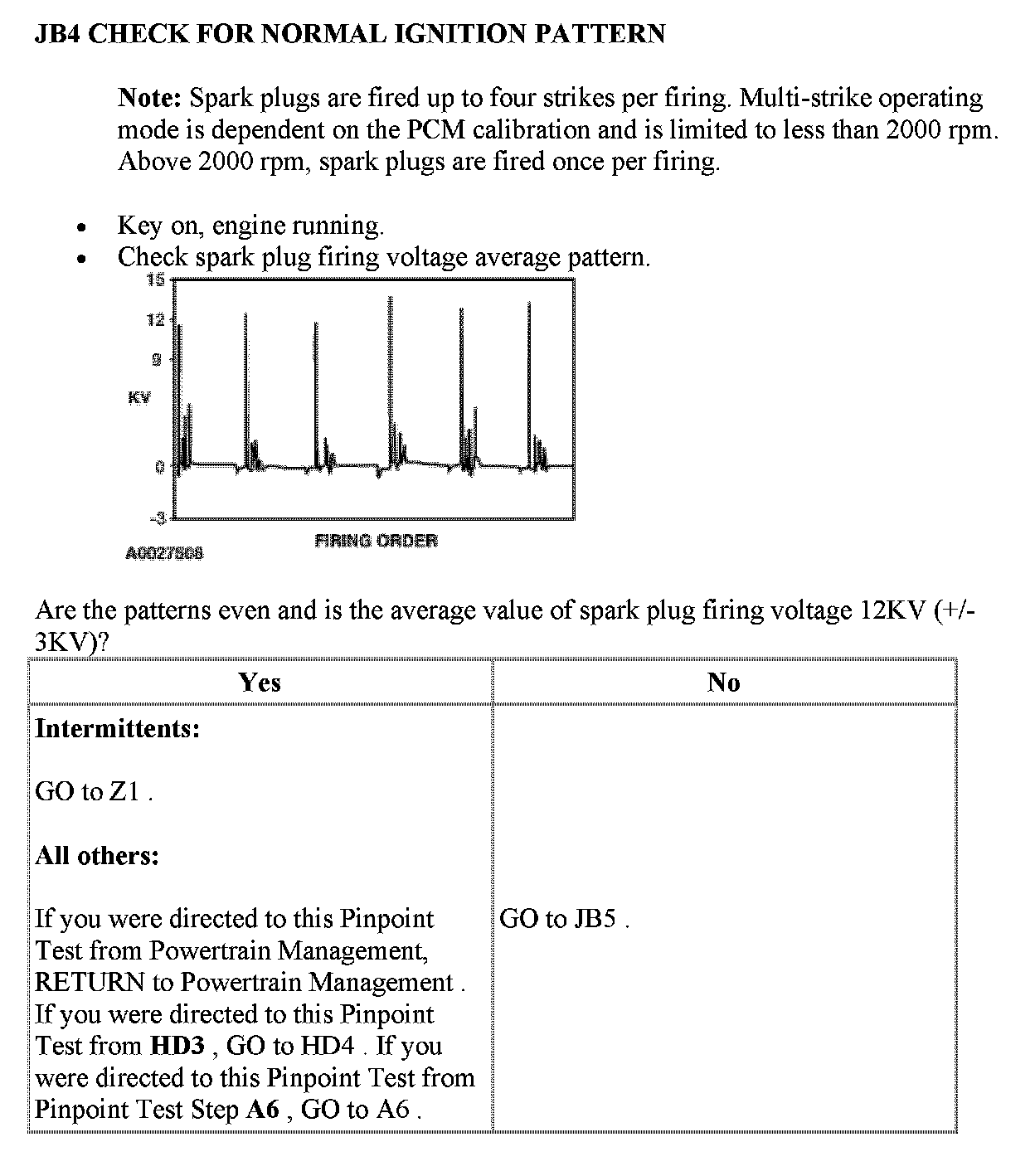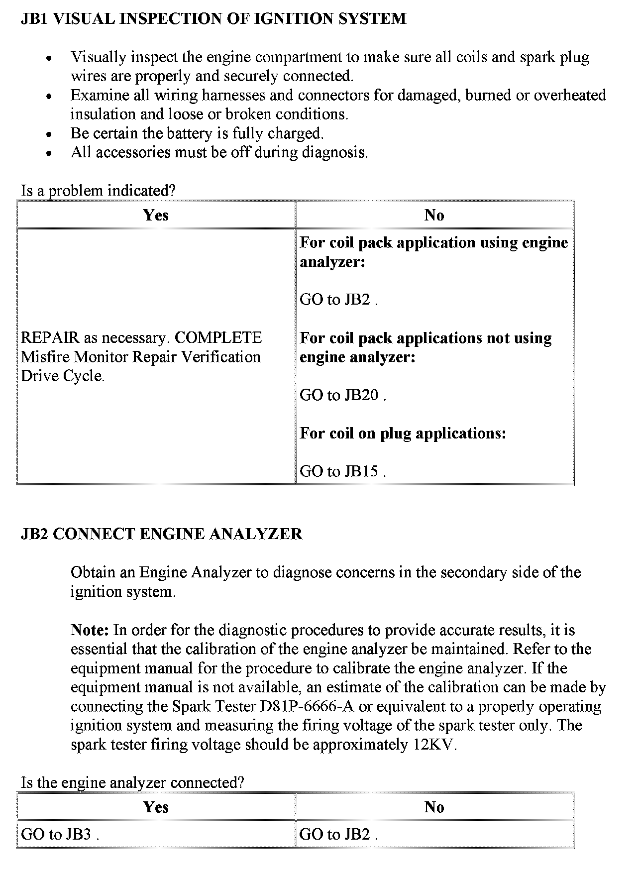 JB: Visual Inspection of Ignition SystemPinpoint Test JB1 - JB2: