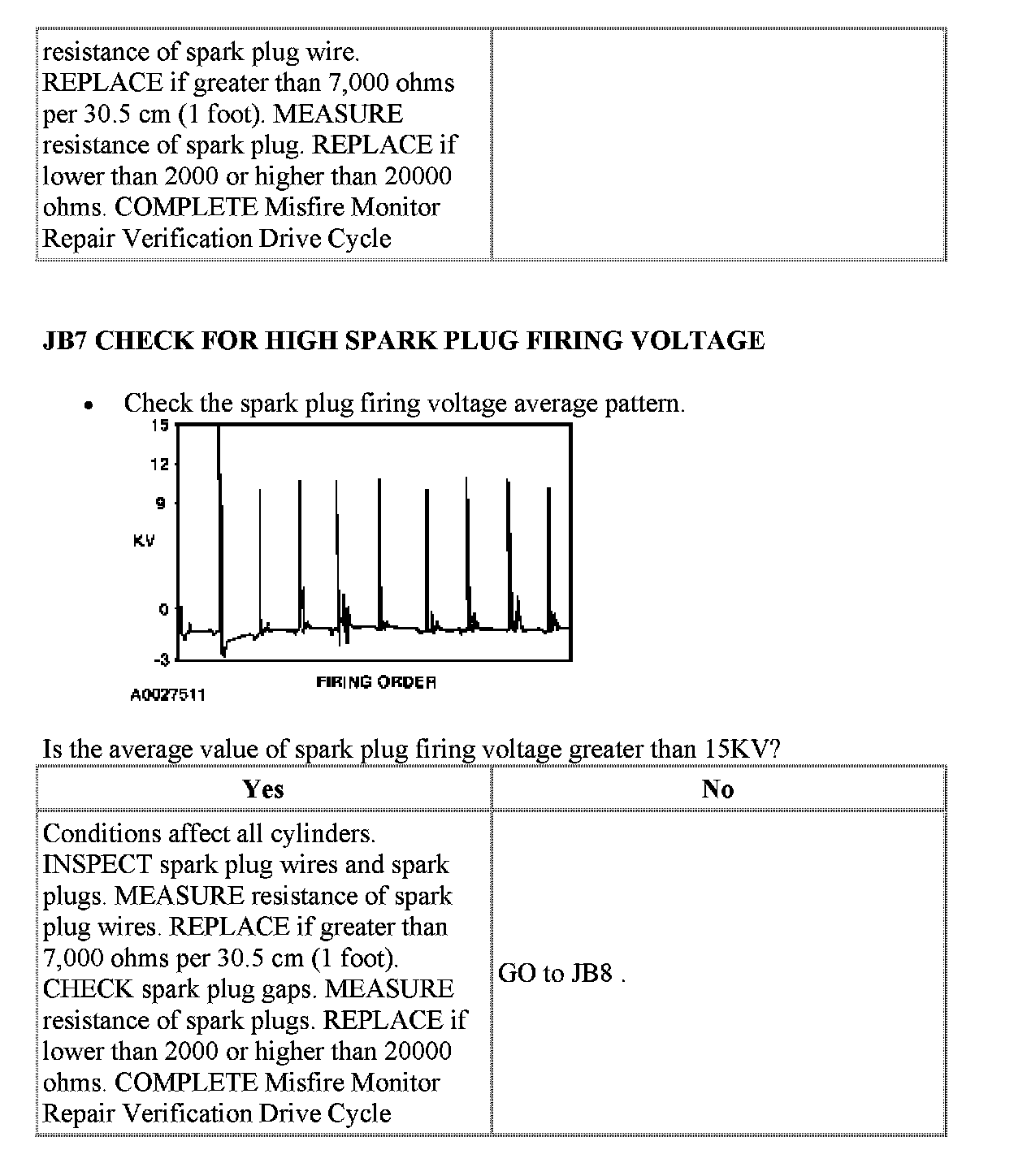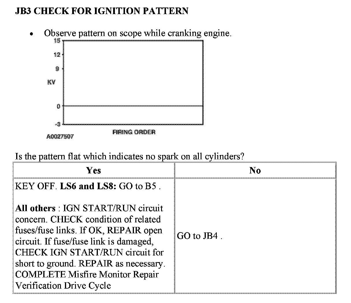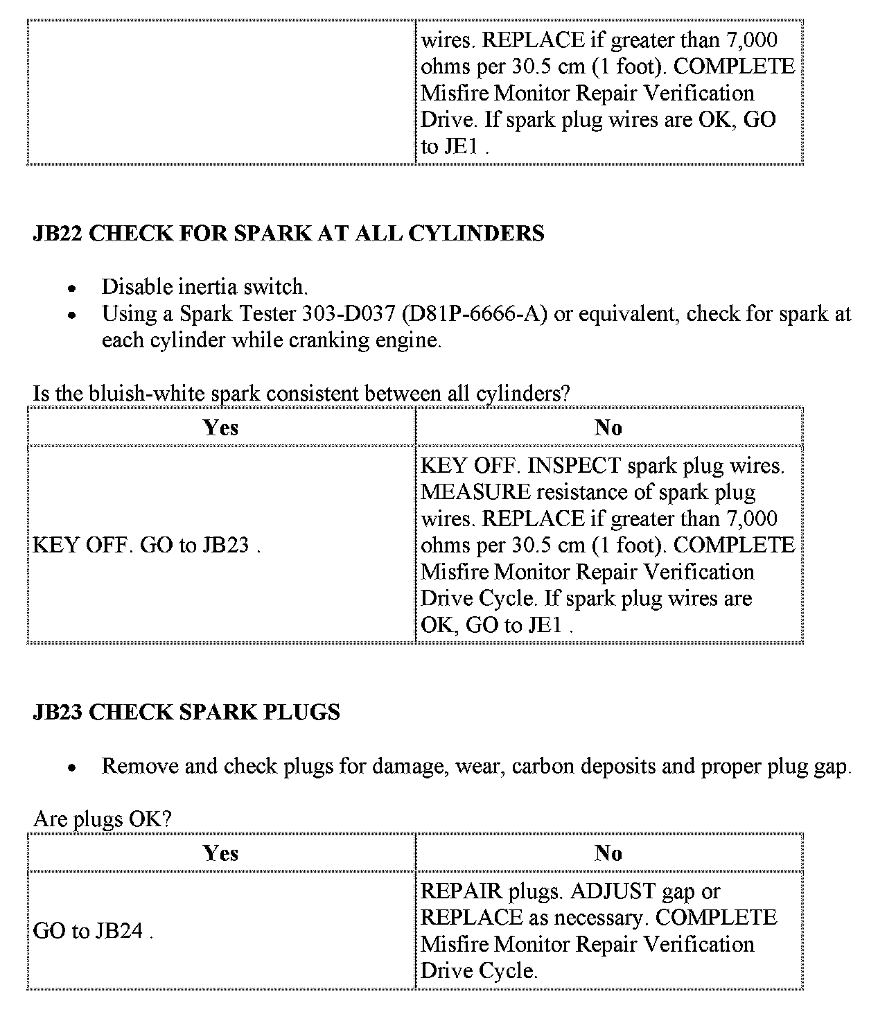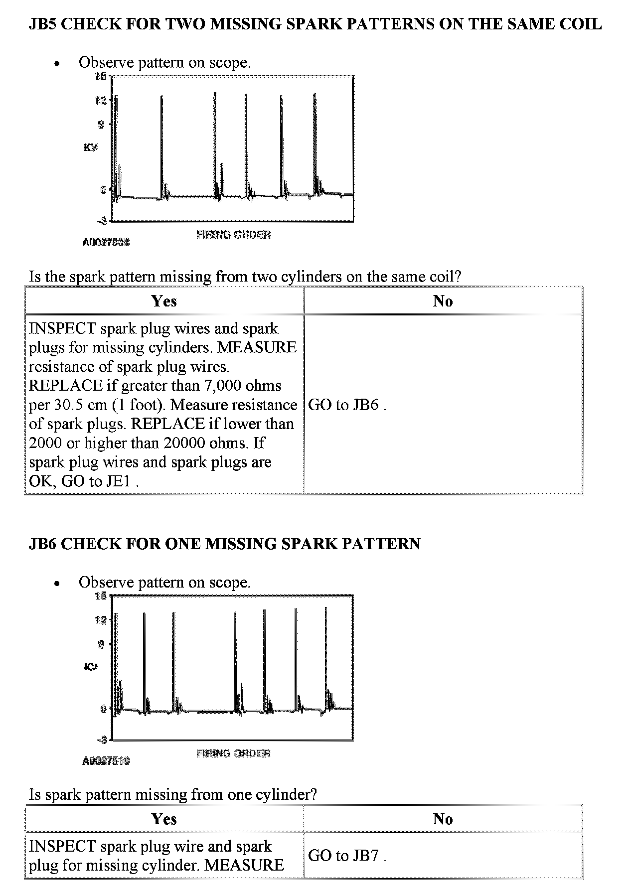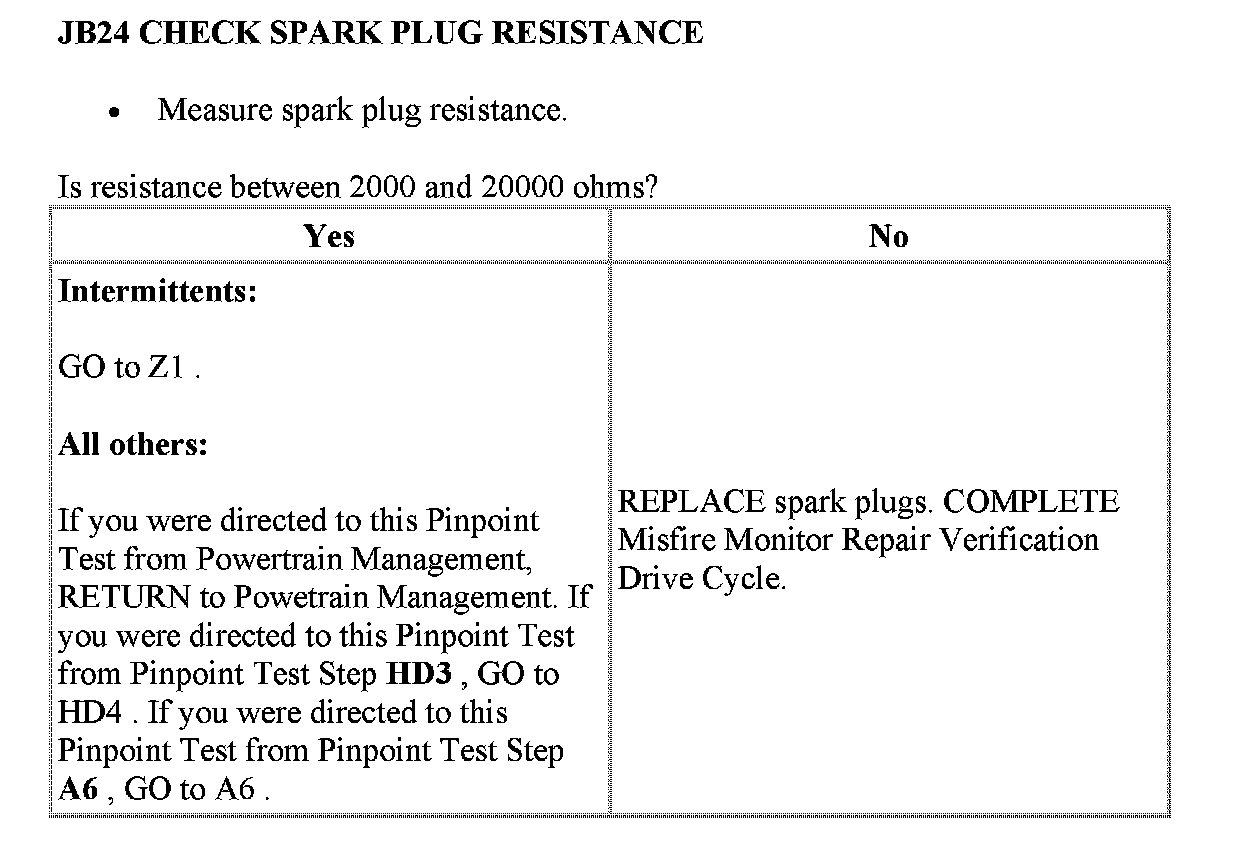JB: Visual Inspection of Ignition SystemPinpoint Test JB1 - JB2: