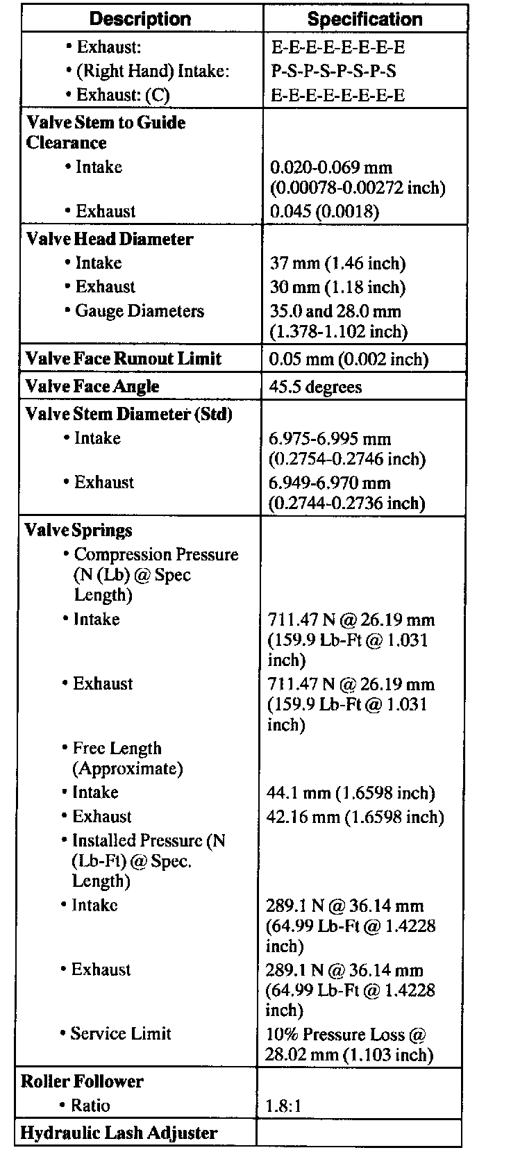 ENGINE SPECIFICATIONS