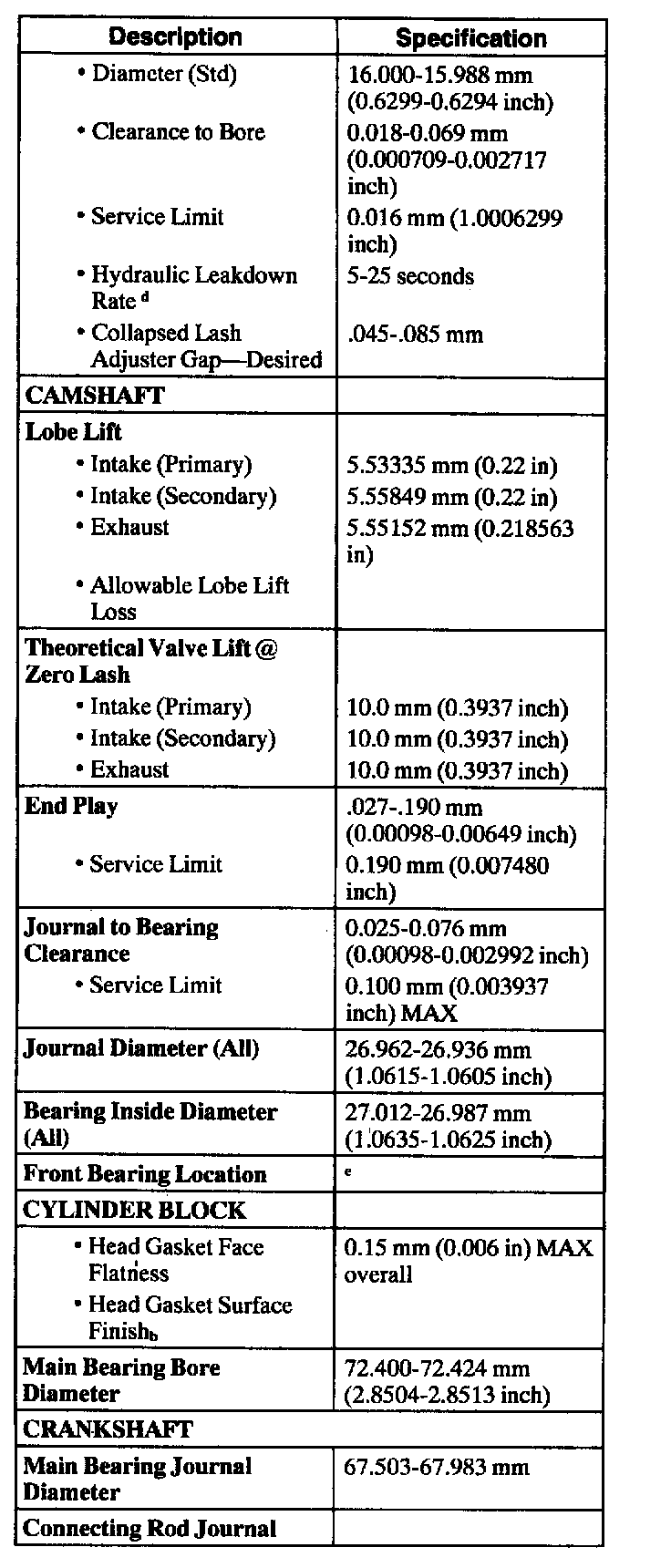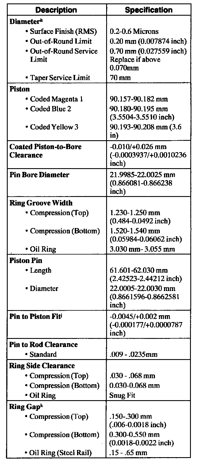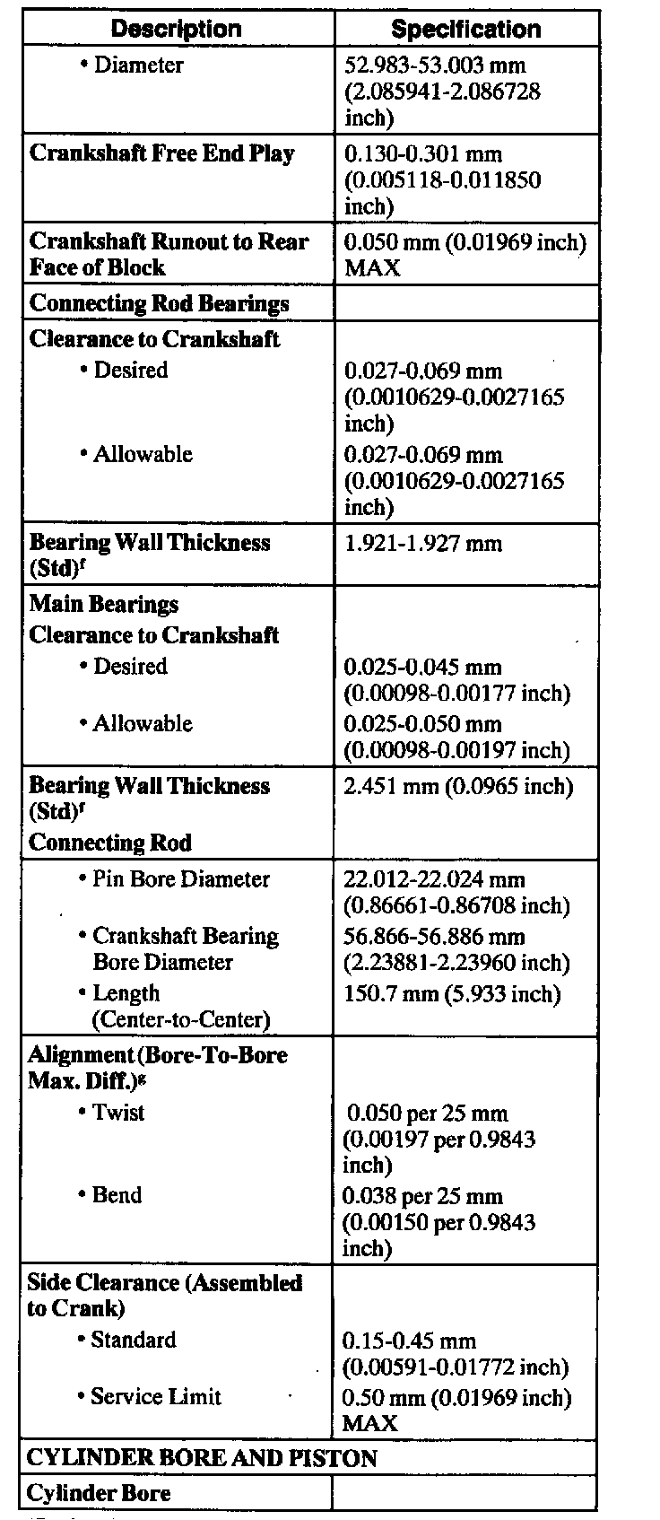 Engine Specifications