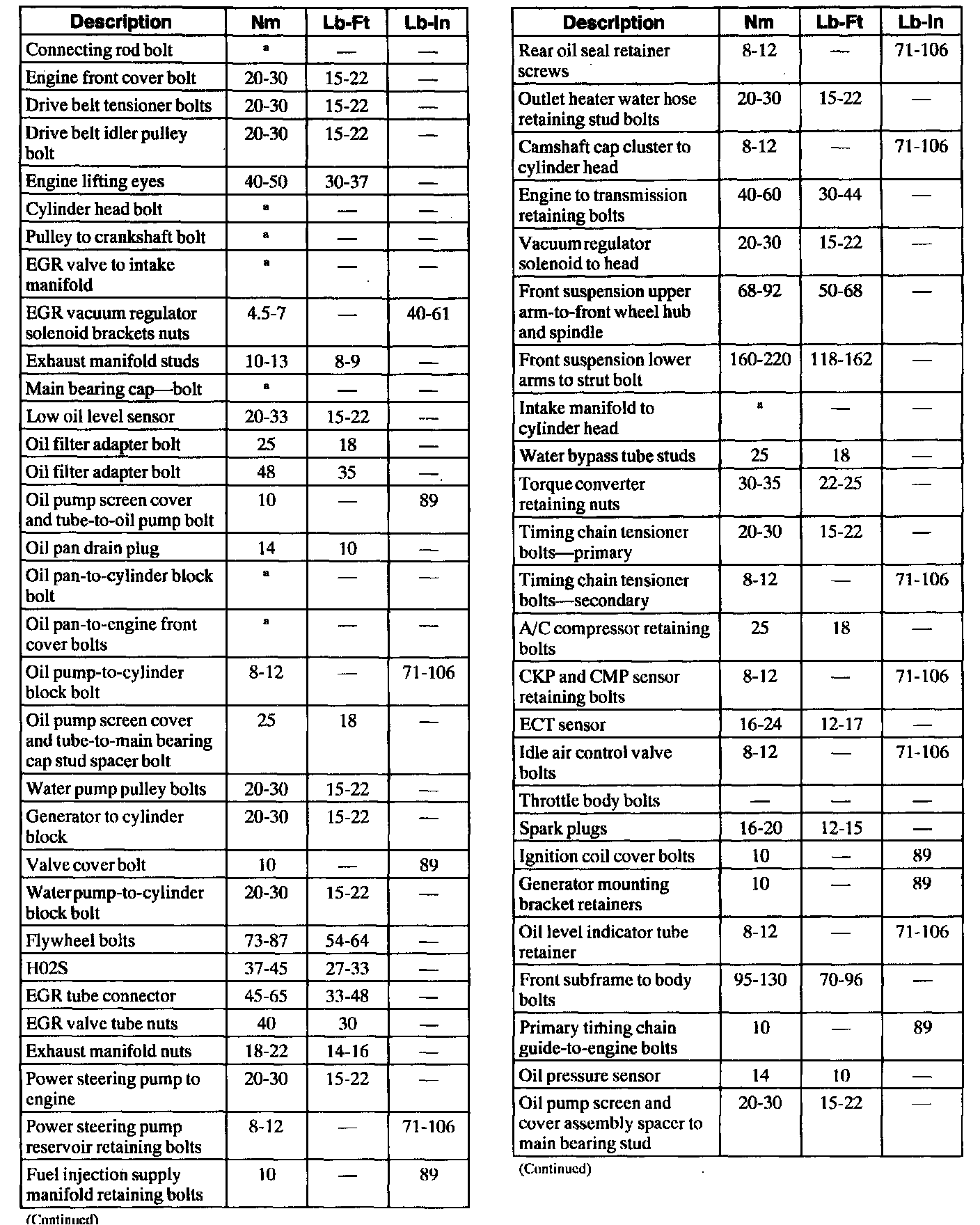 Torque Specifications