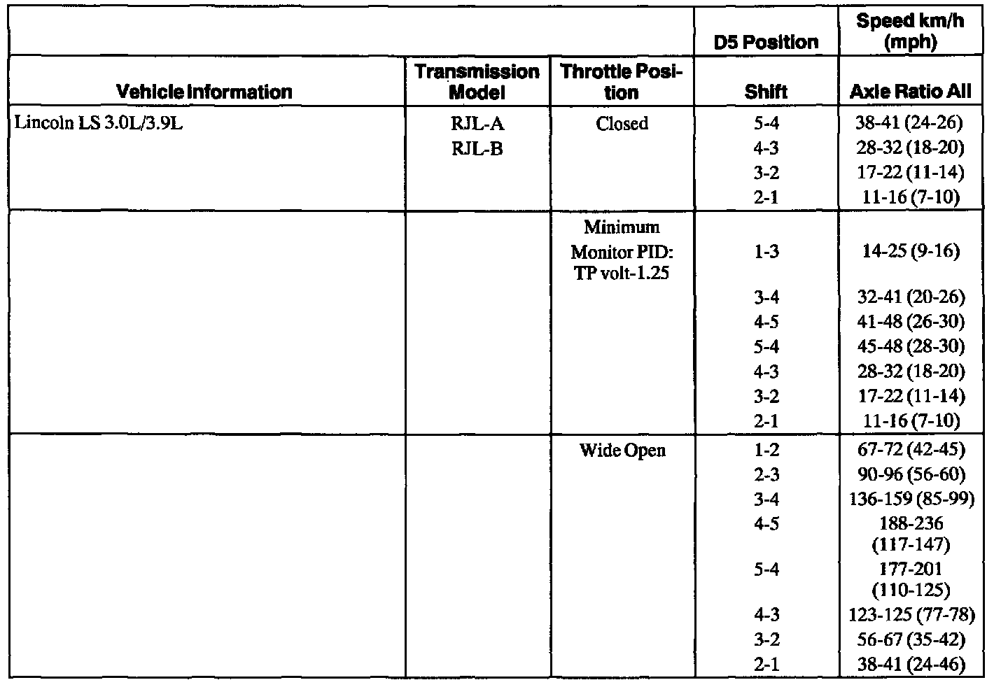Shift Speeds