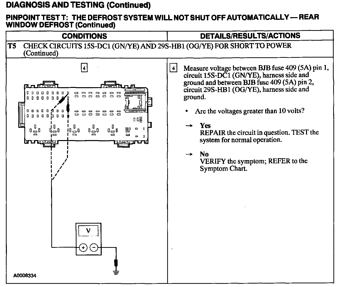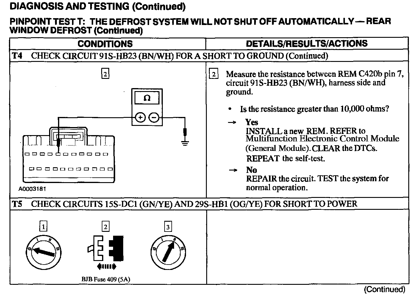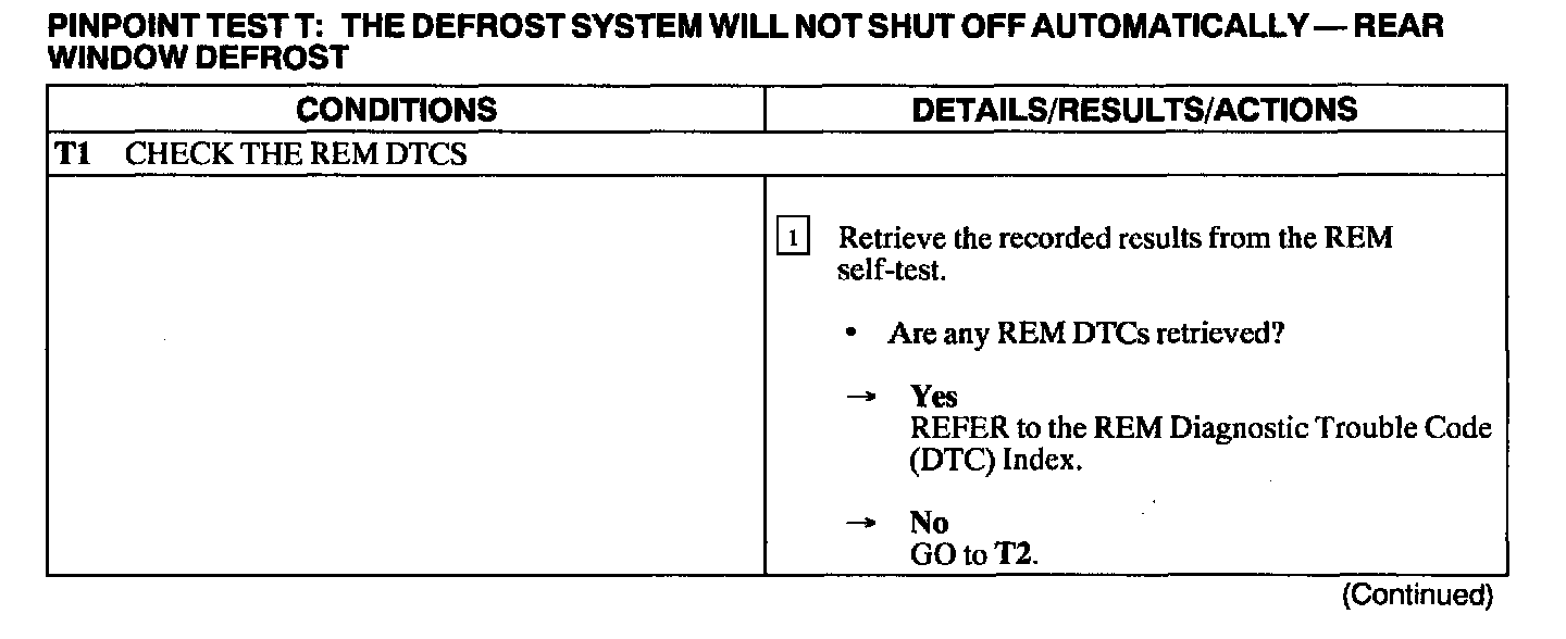 Test T: Defrost System Will Not Shut Off Automatically - Rear Window Defrost