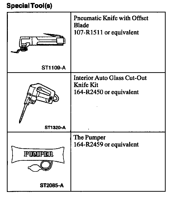Windshield: Tools and Equipment