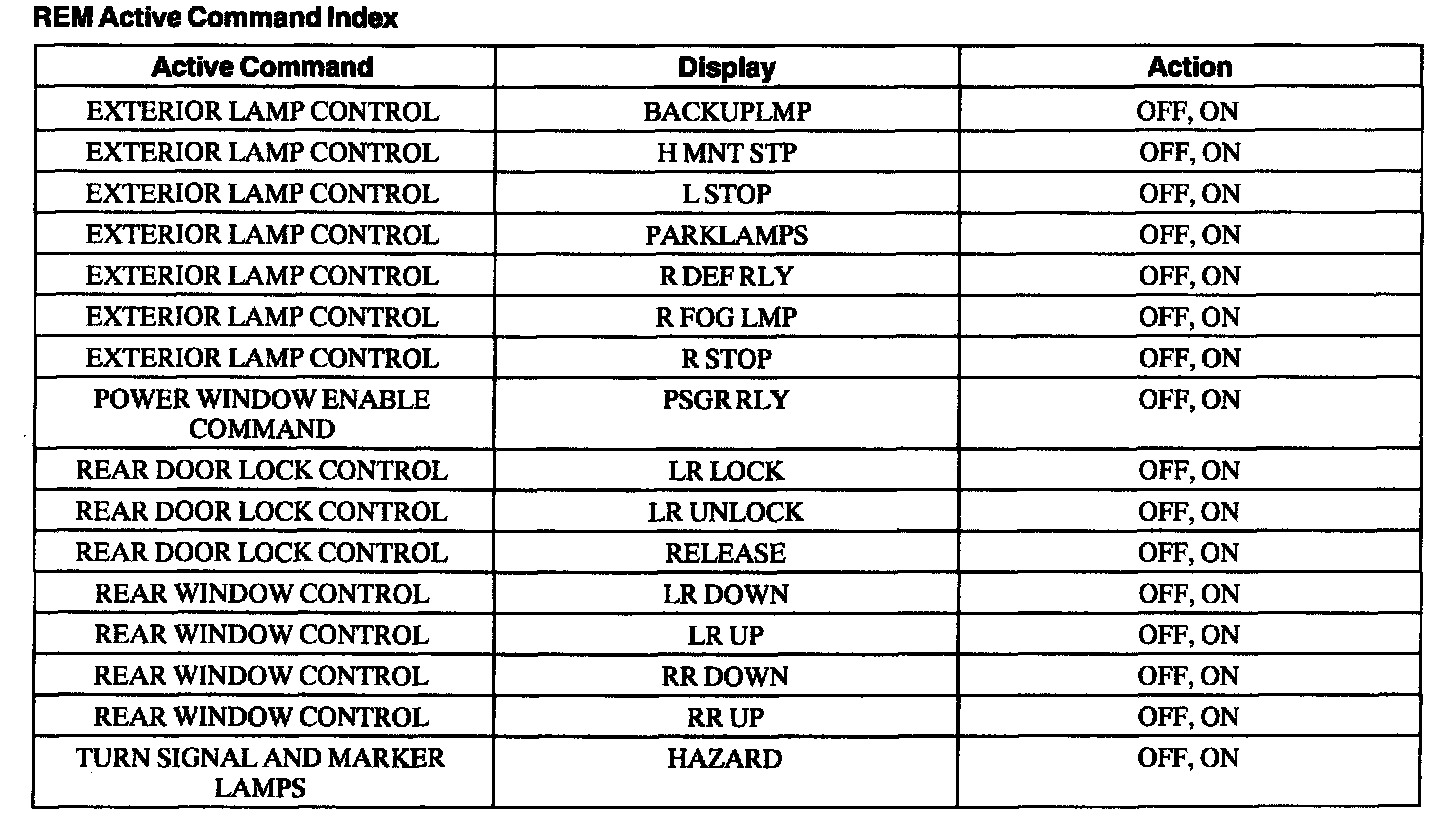 Rear Electronic Module (REM) Active Command Index