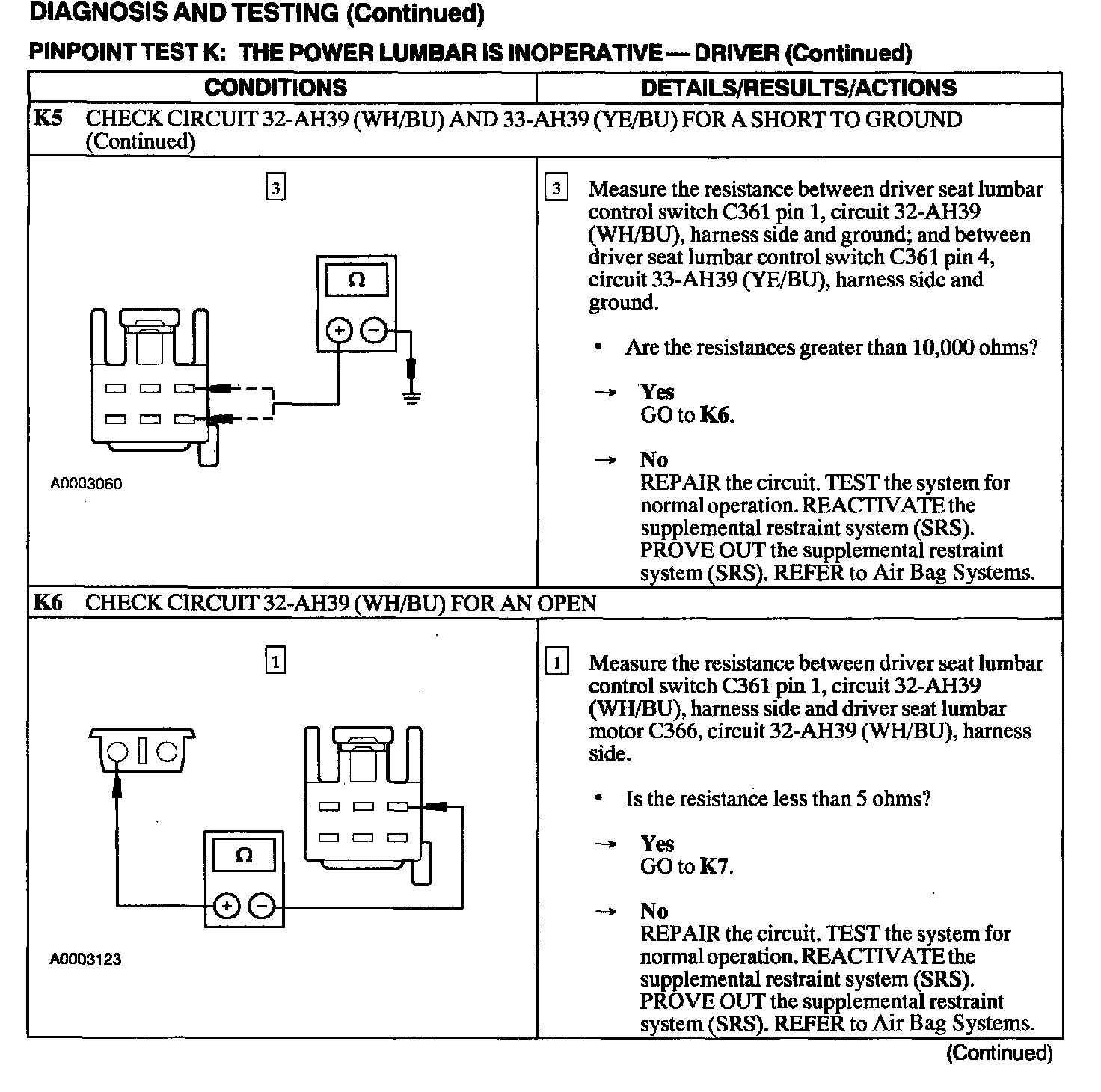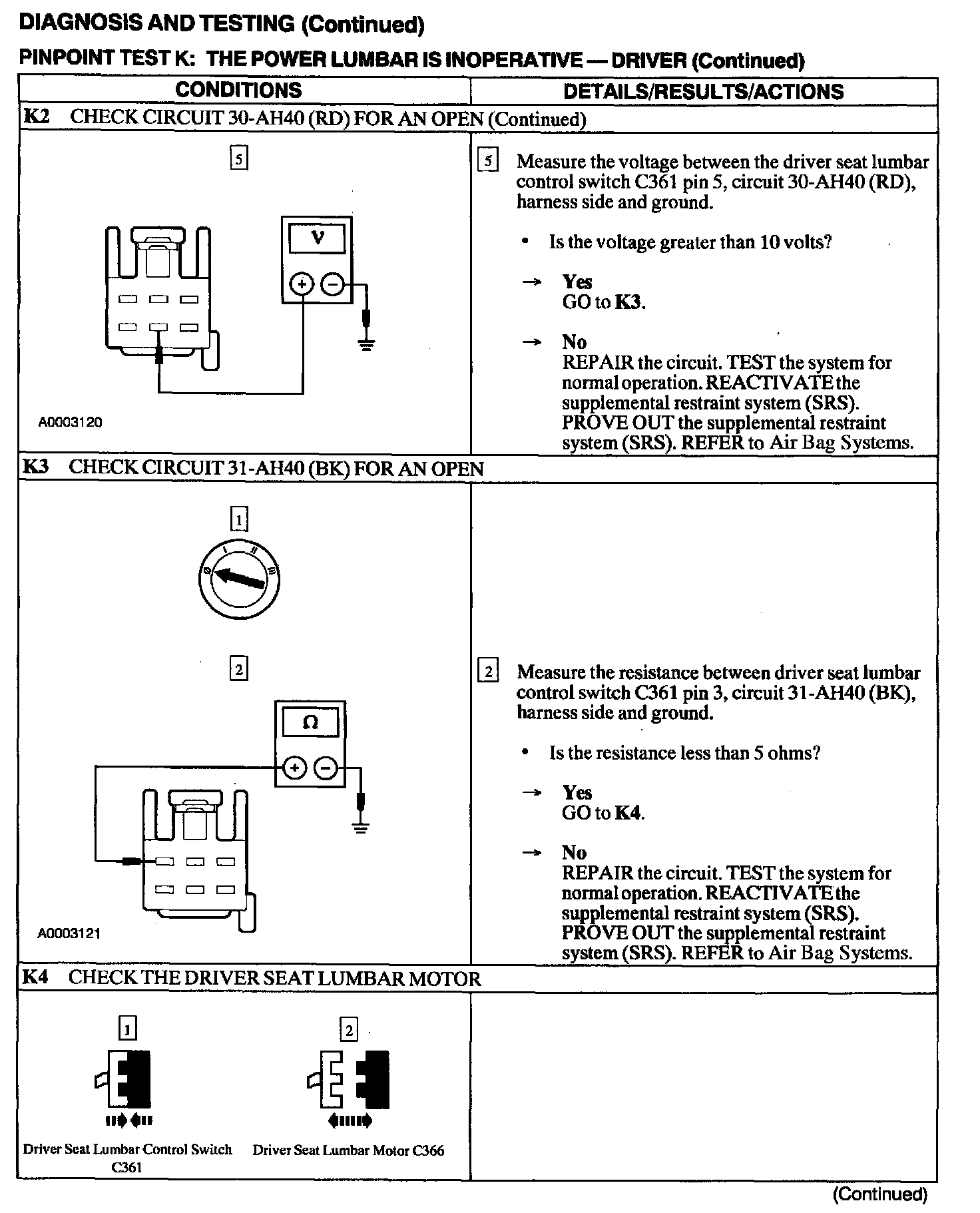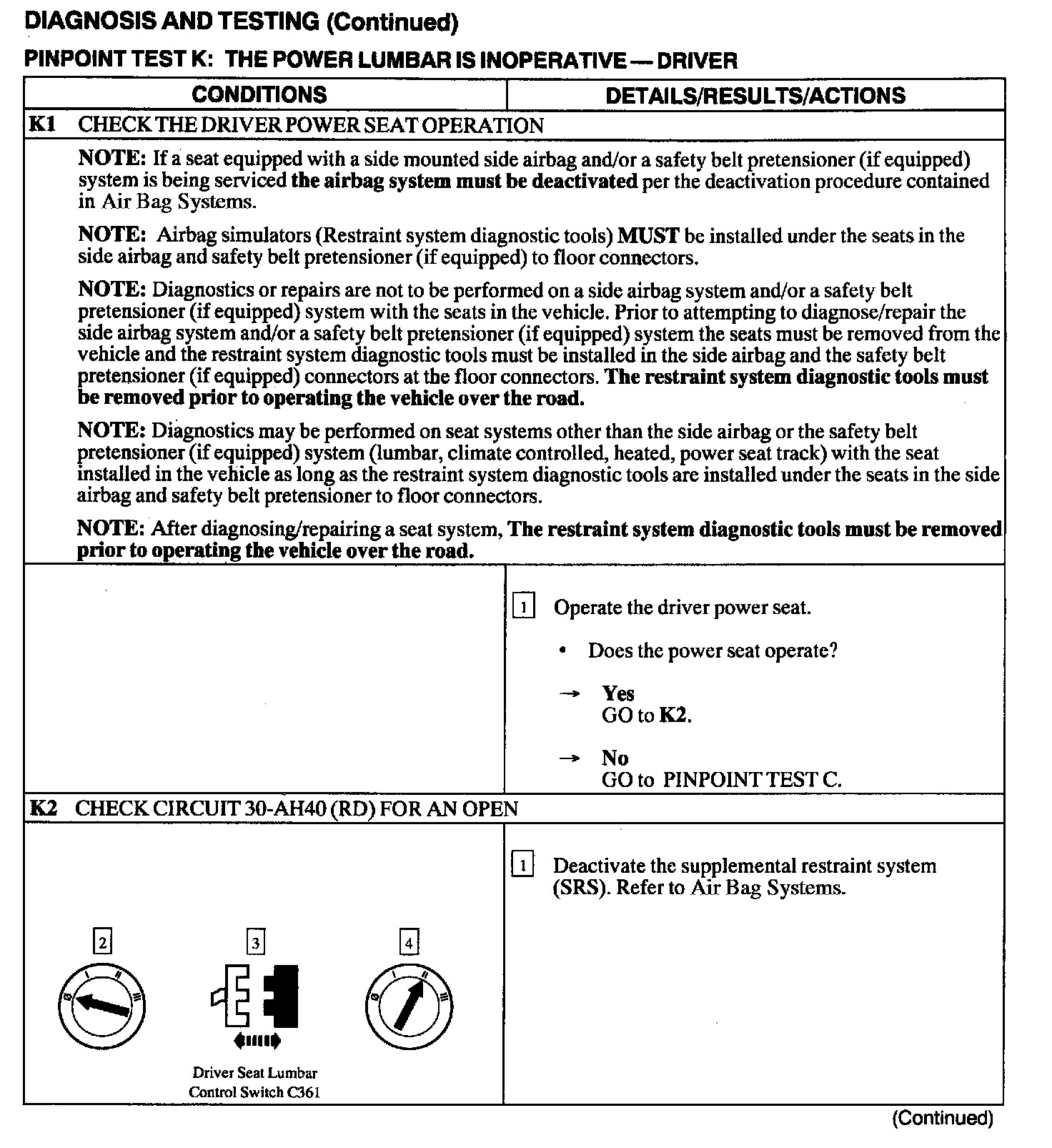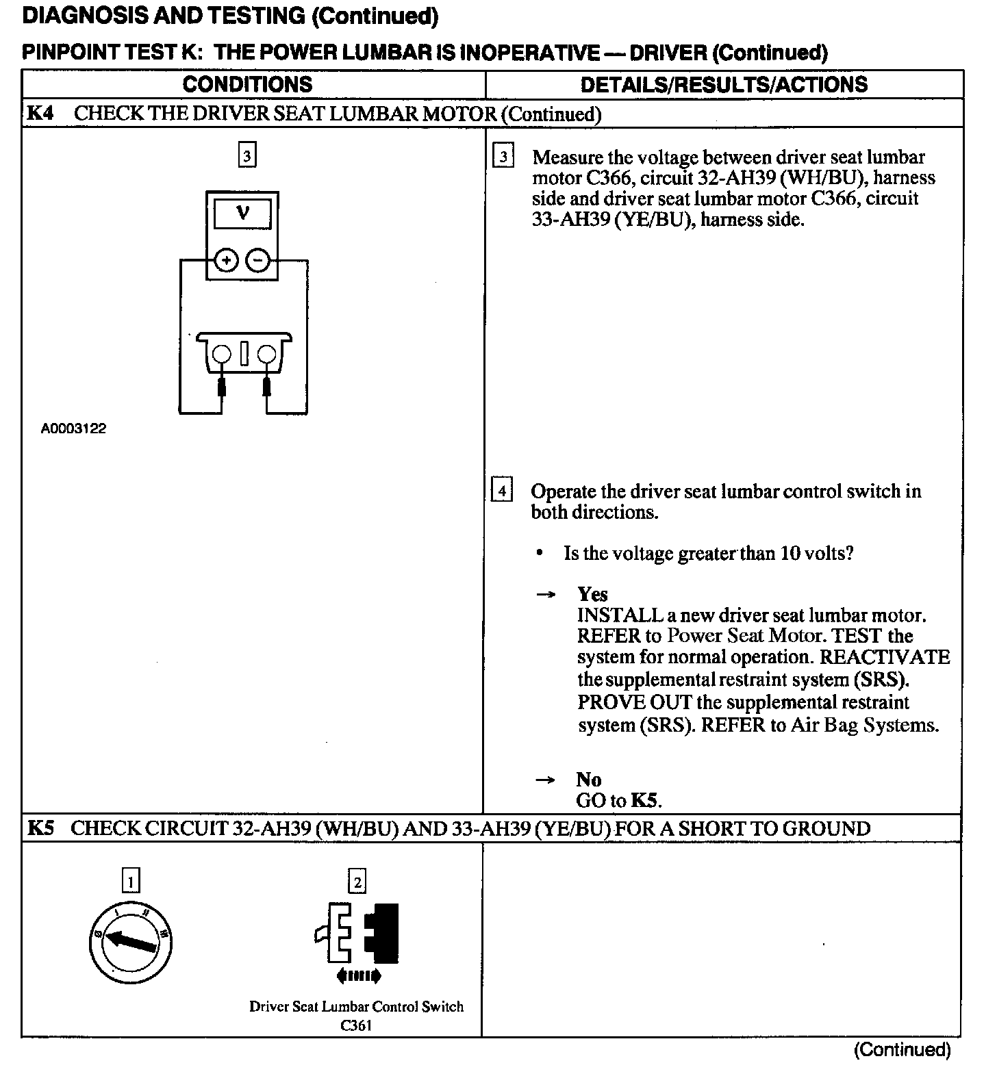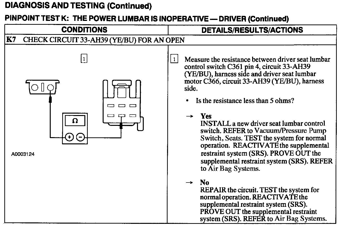 Test K: Power Lumbar Is Inoperative-Driver