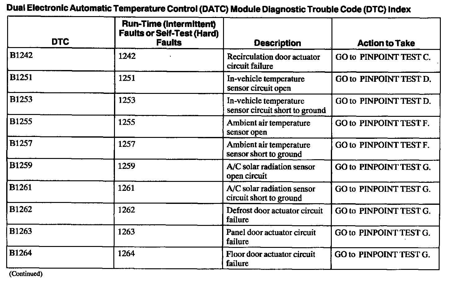 DTC Index B1242 - B1264: