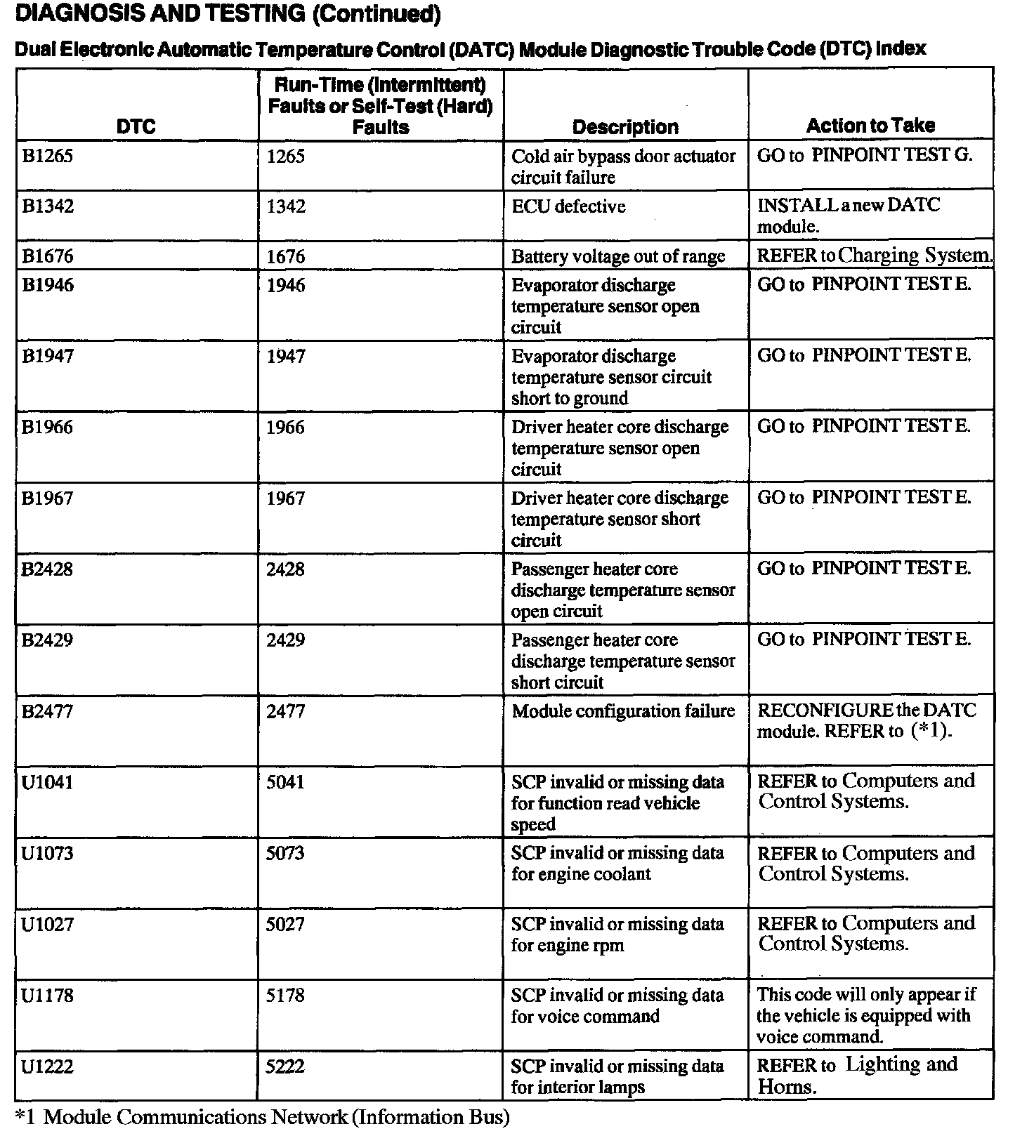 Dual Electronic Auto Temp Control (DEATC) Module Diagnostic Trouble Codes