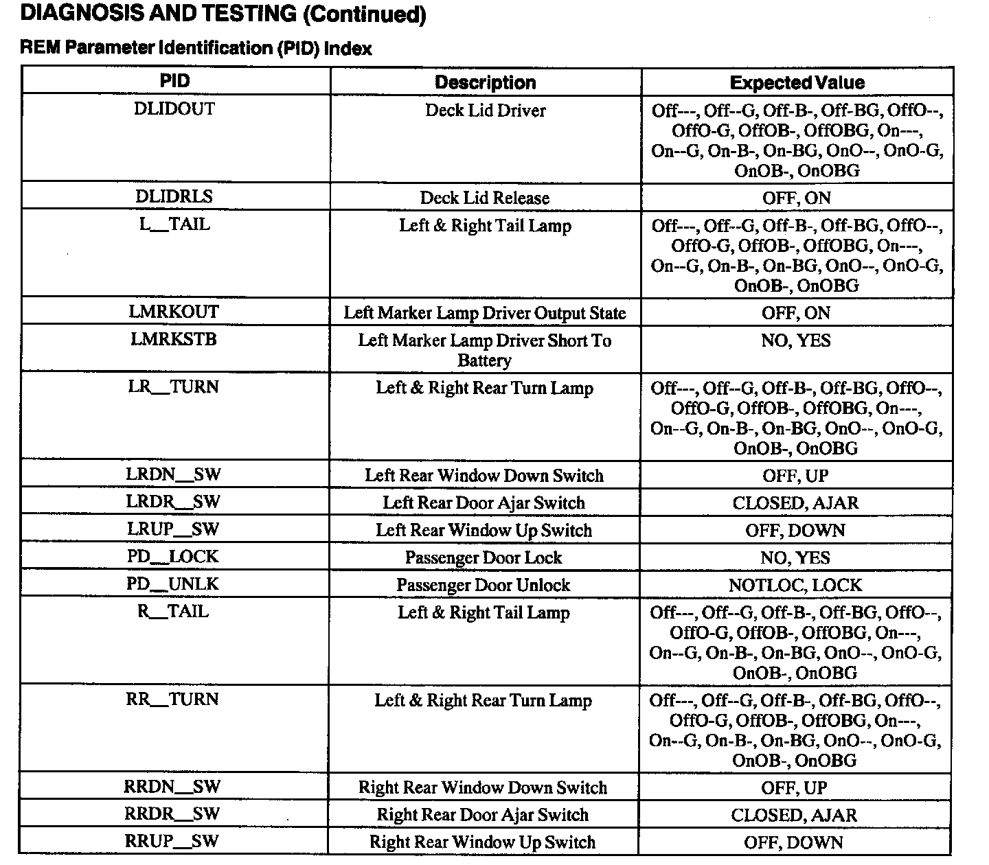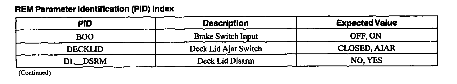Rear Electronic Module Parameter Identification (PID) Index