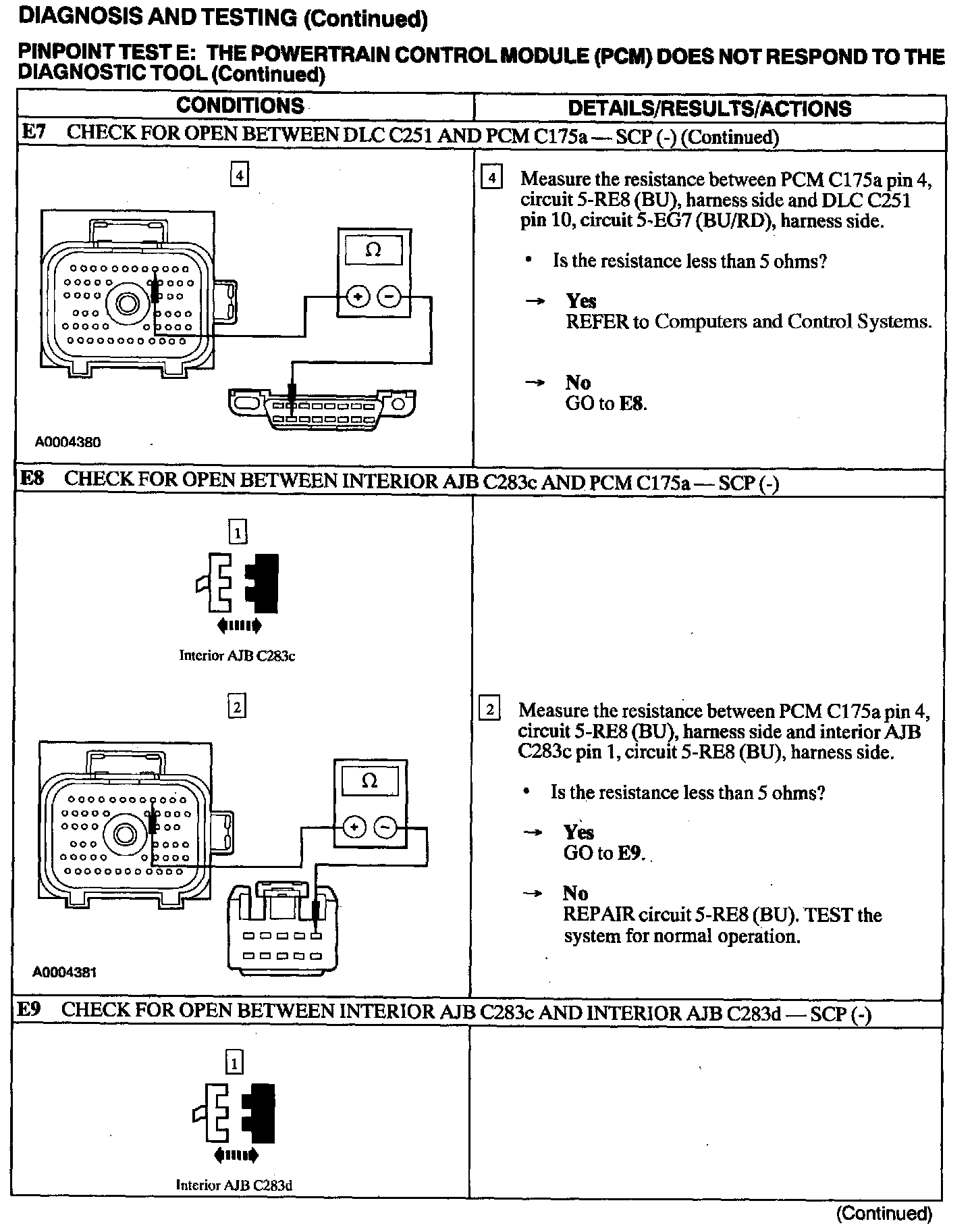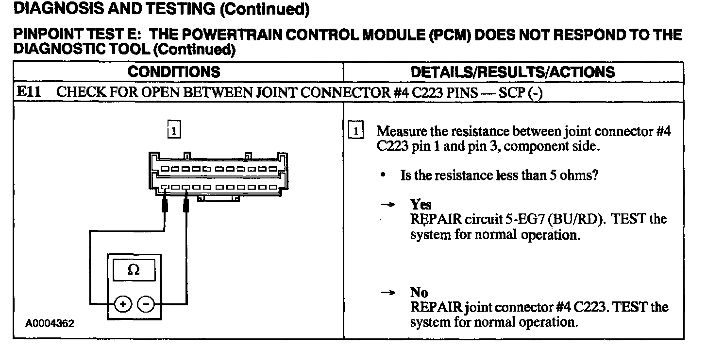 Test E: PCM Does Not Respond to the Diagnostic Tool