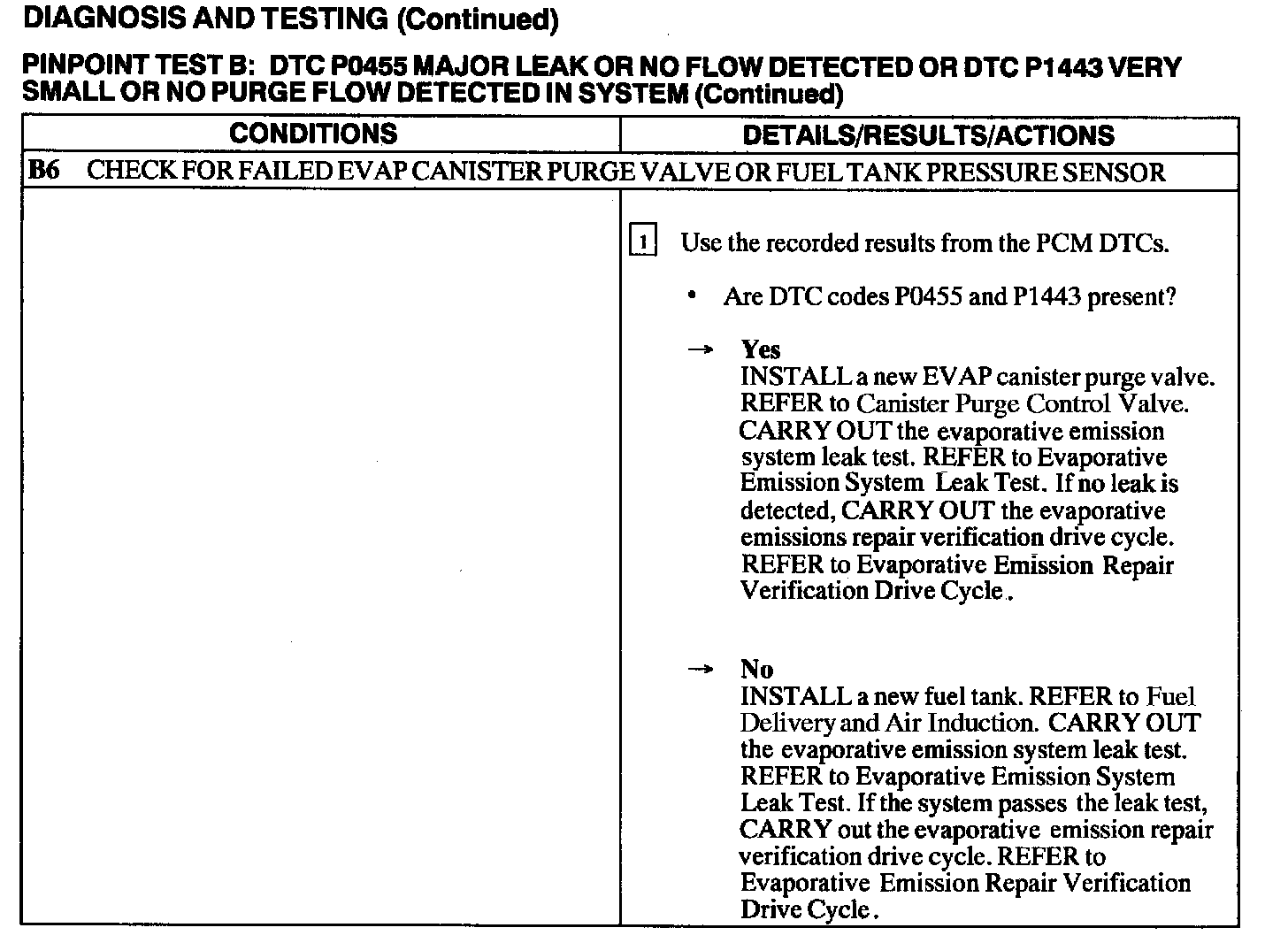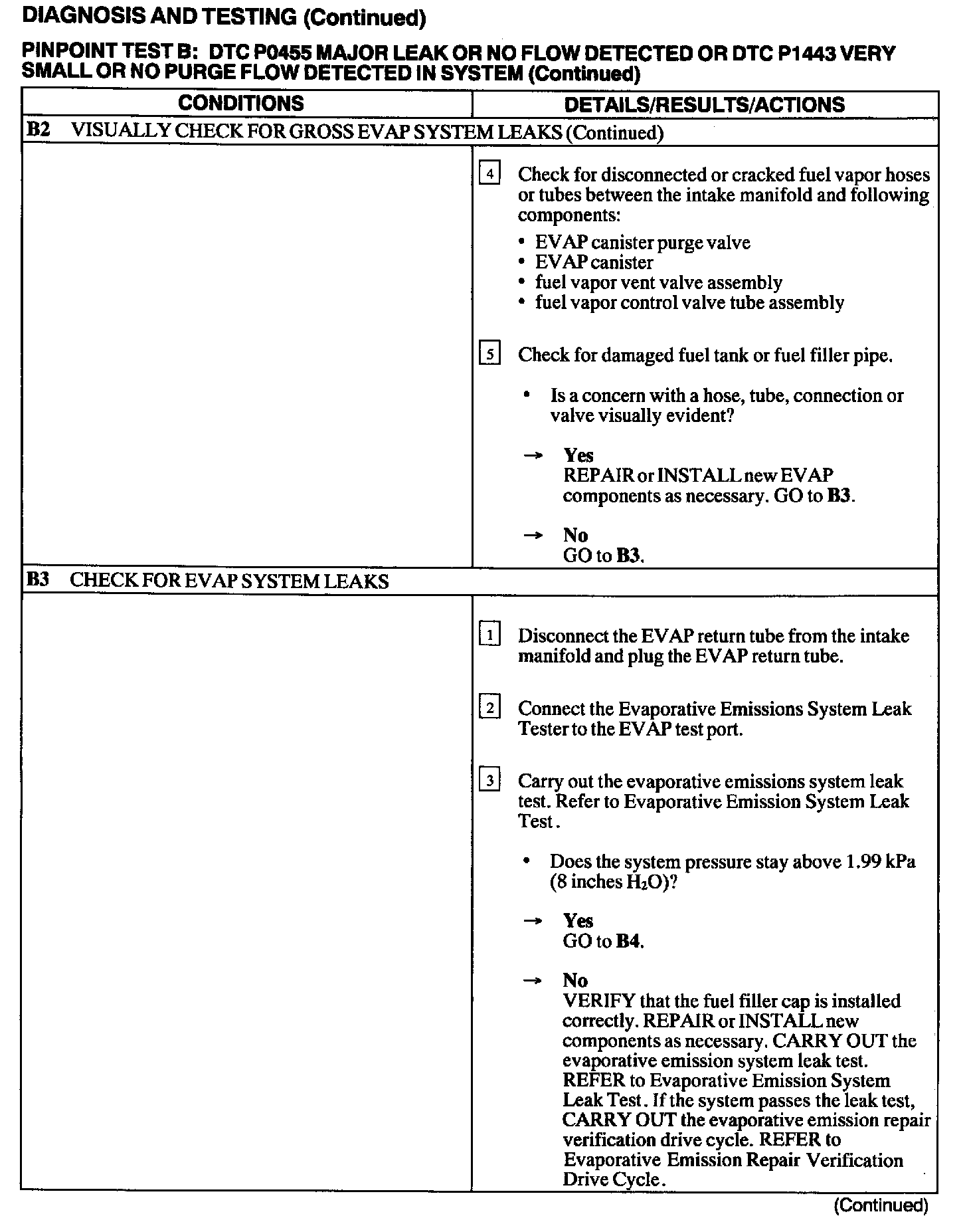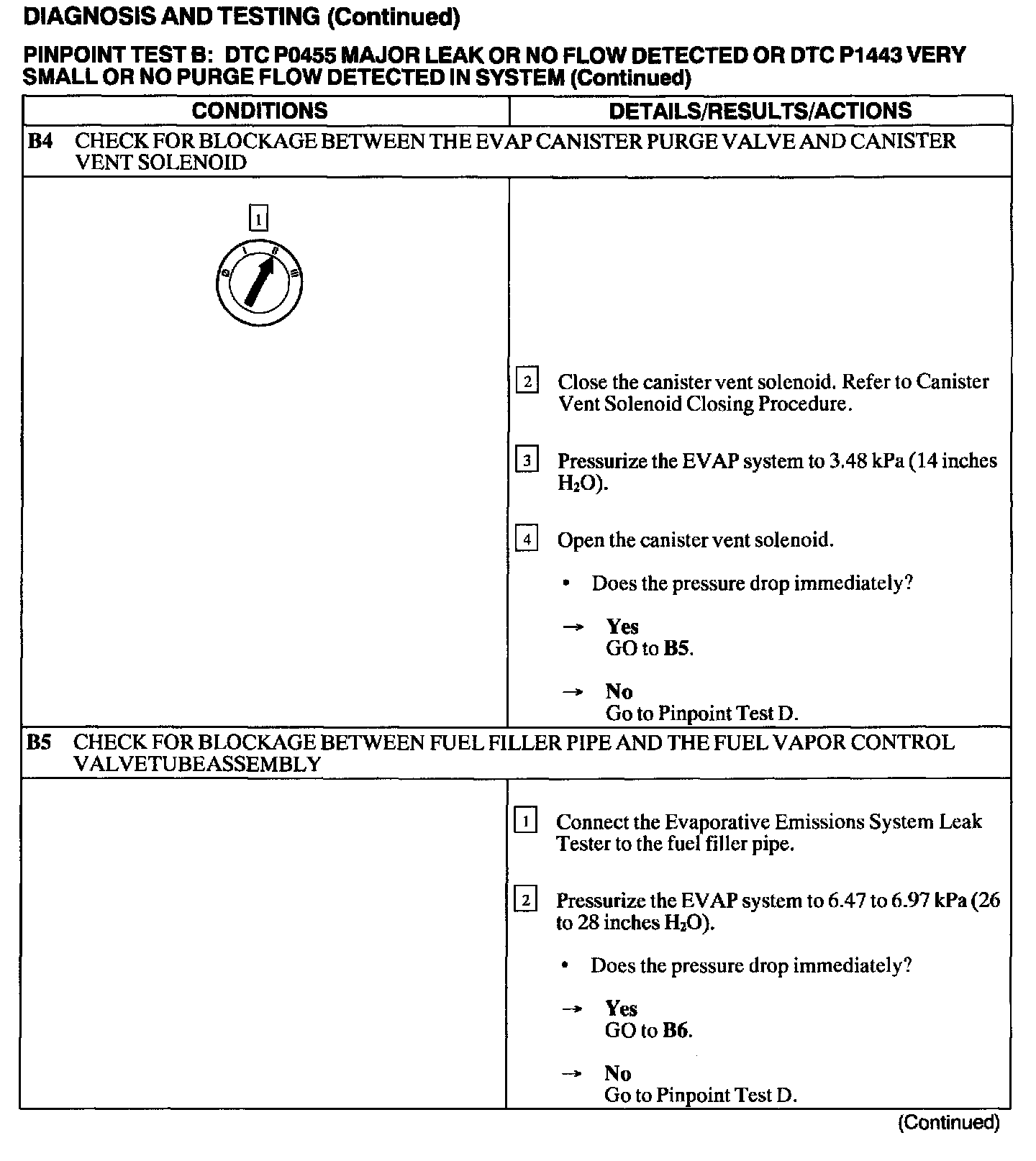 Test B: DTC P0455/P1443 No Flow Detected In System