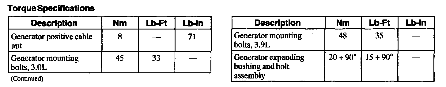 Torque Specifications: