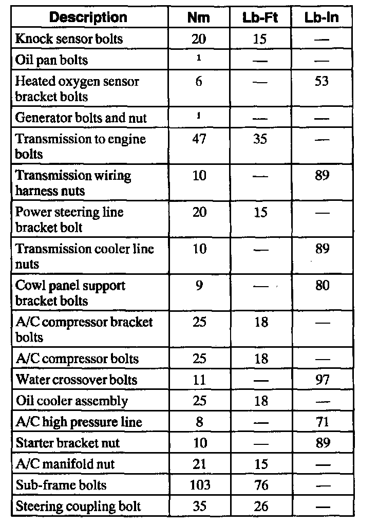 General Torque Specifications