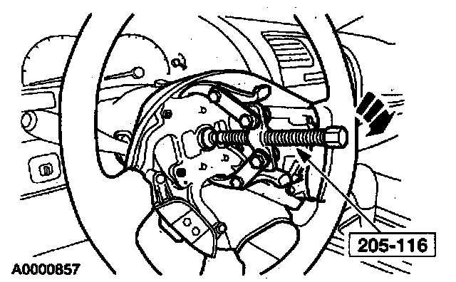 7. Using the special tool, loosen the steering wheel.