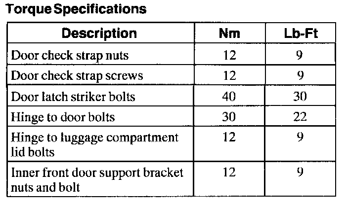 Doors, Hood and Trunk: Specifications