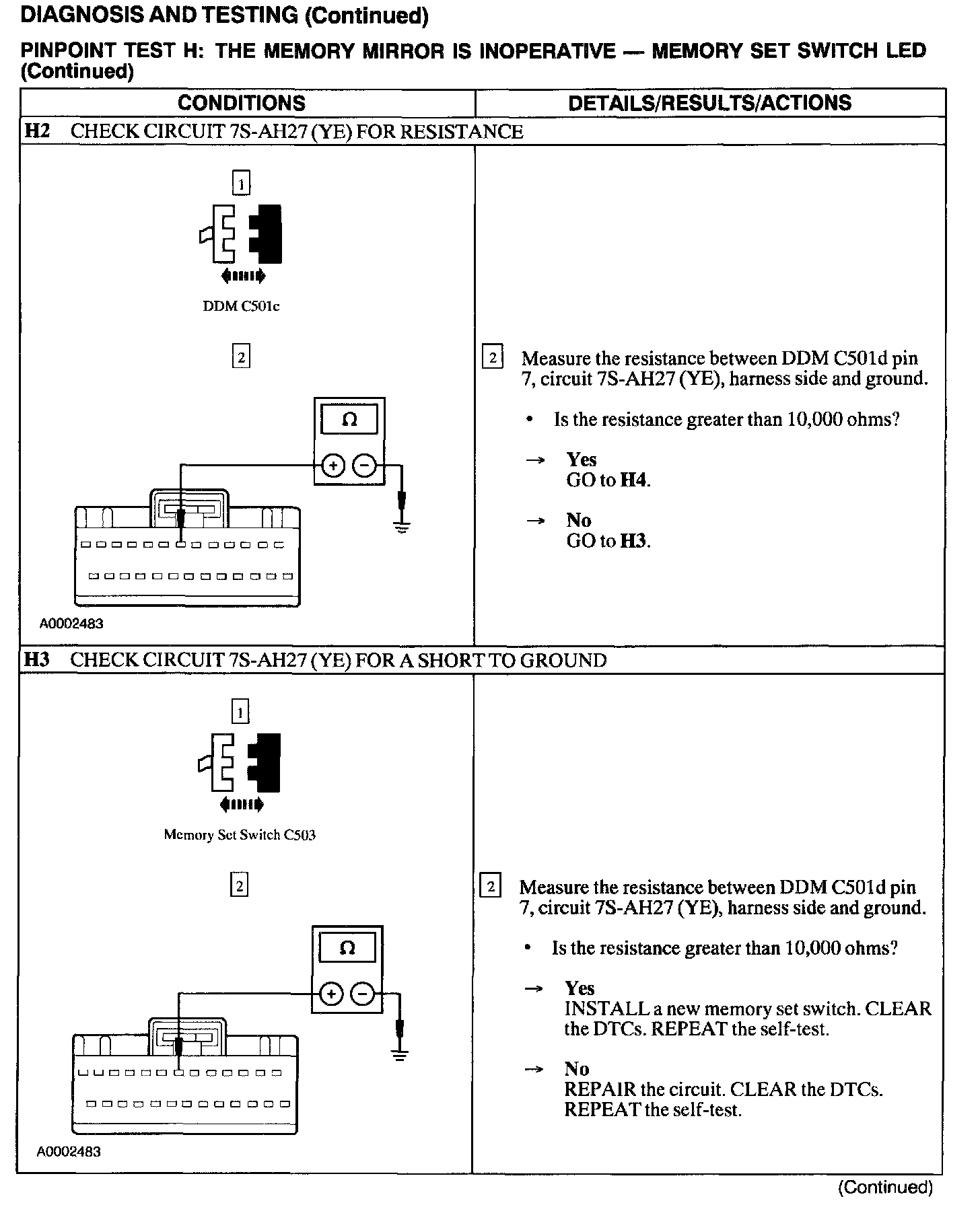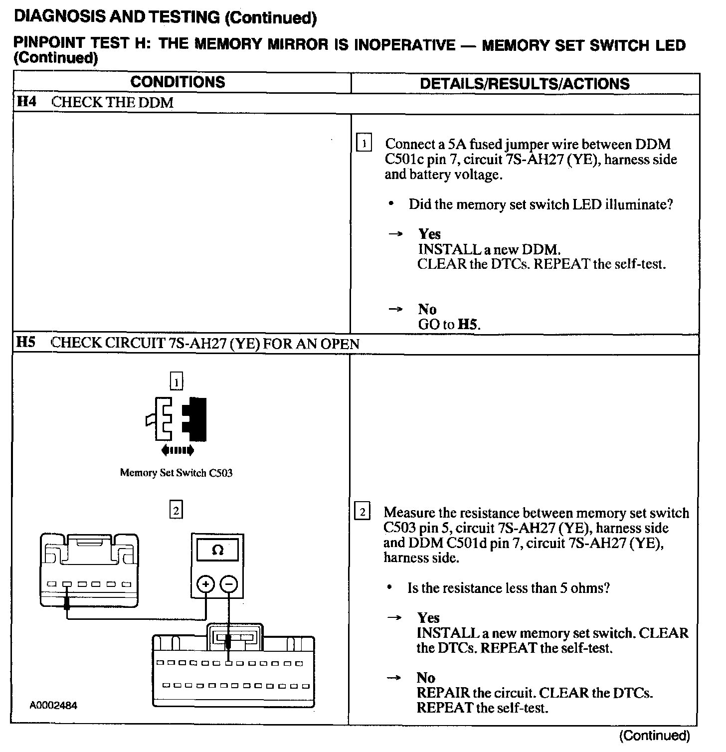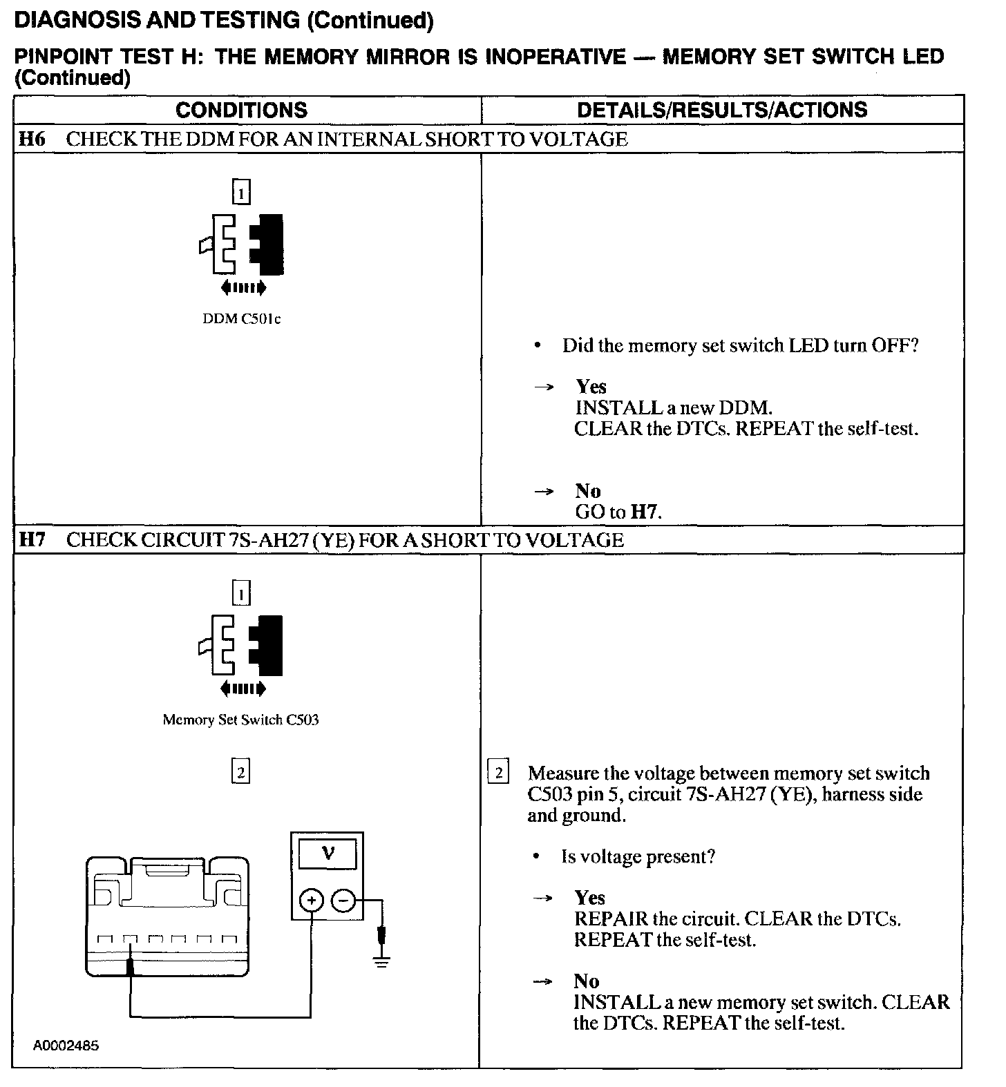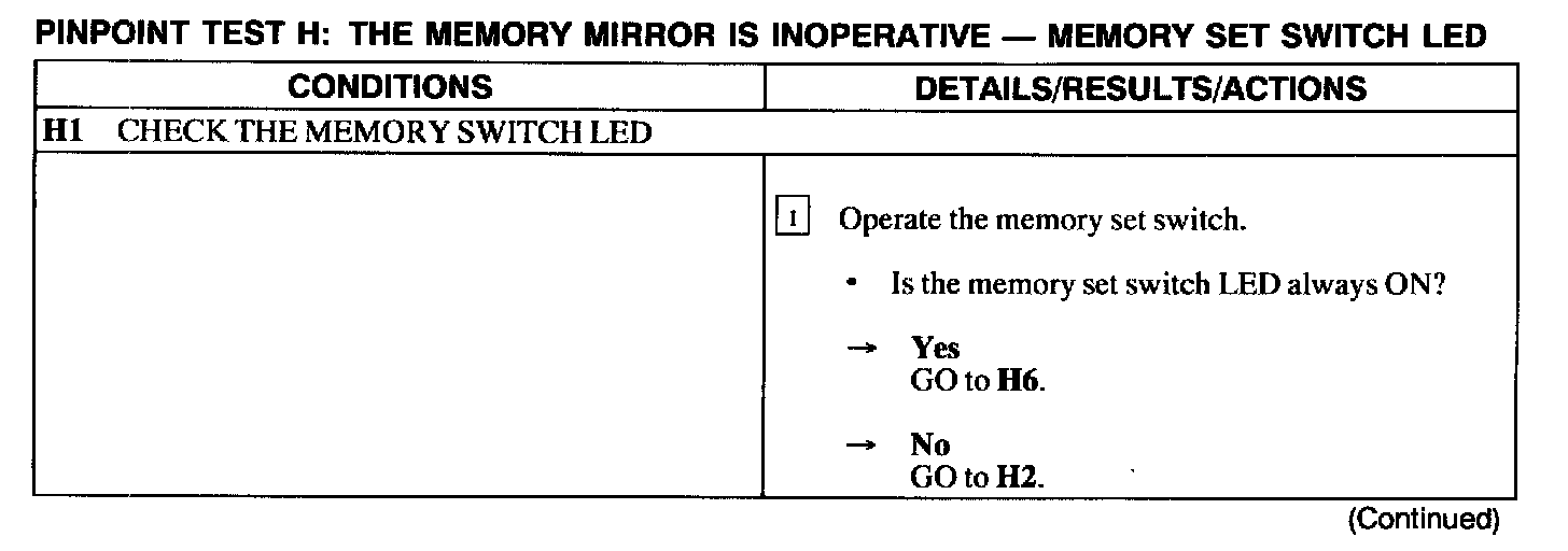 Test H: Memory Mirror Is Inoperative - Memory Set Switch Led