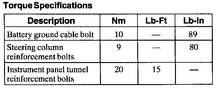 Torque Specifications:
