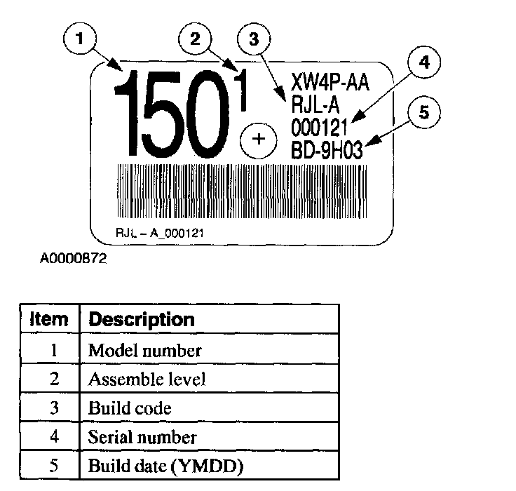 All vehicles are equipped with a Vehicle Certification Label, located on the driver side door lock post. Refer to the code in the space marked TR. For model, service ID level or build date information, refer to the transmission service ID tag located on the transmission case.