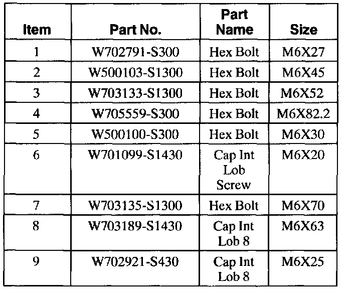 103. Refer to the chart for bolt locations.