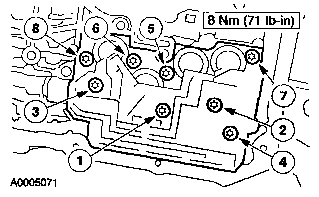 111. Install the reverse servo. Tighten the bolts in sequence shown in two stages.