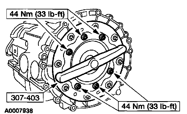 133. CAUTION: The special tool must be used to correctly align the adapter plate to the converter or transmission damage can occur.