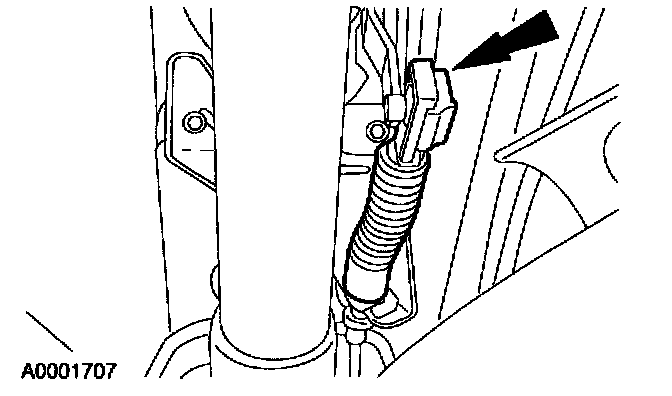 2 Depress the tab and slide the shift cable out of the shift cable bracket.
