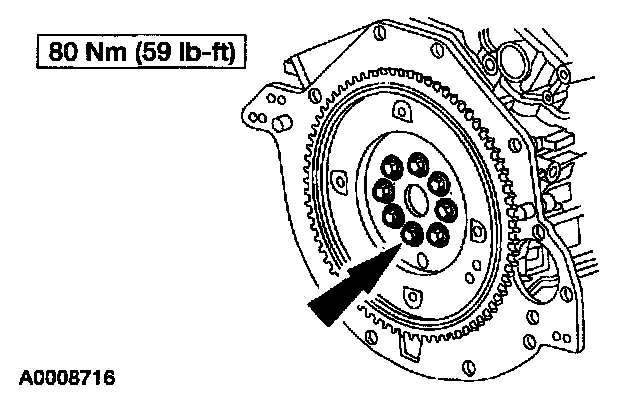 1. Position the flexplate and install the bolts.