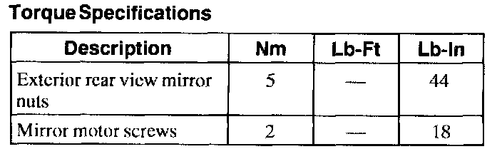 Torque Specifications: