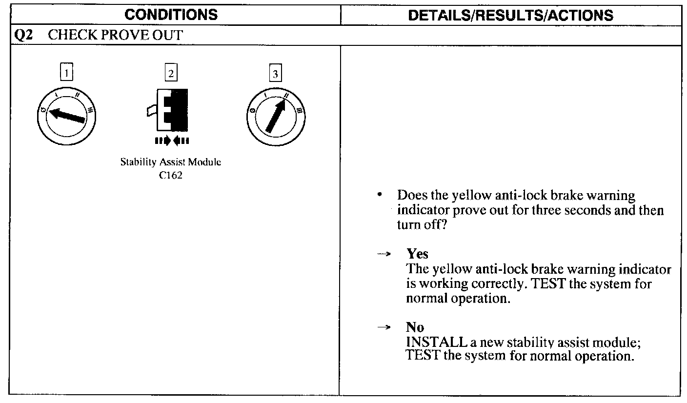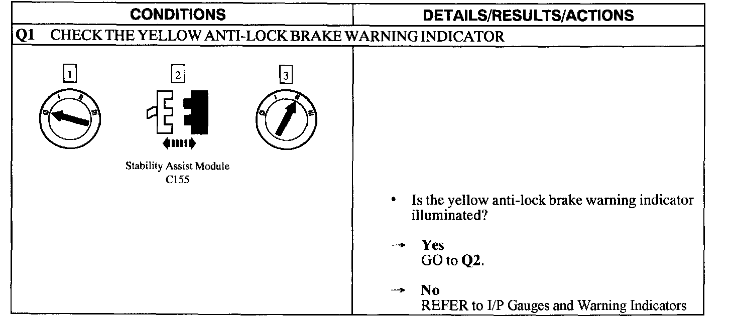 PINPOINT TEST Q: THE YELLOW ABS WARNING INDICATOR DOES NOT SELF-CHECK
